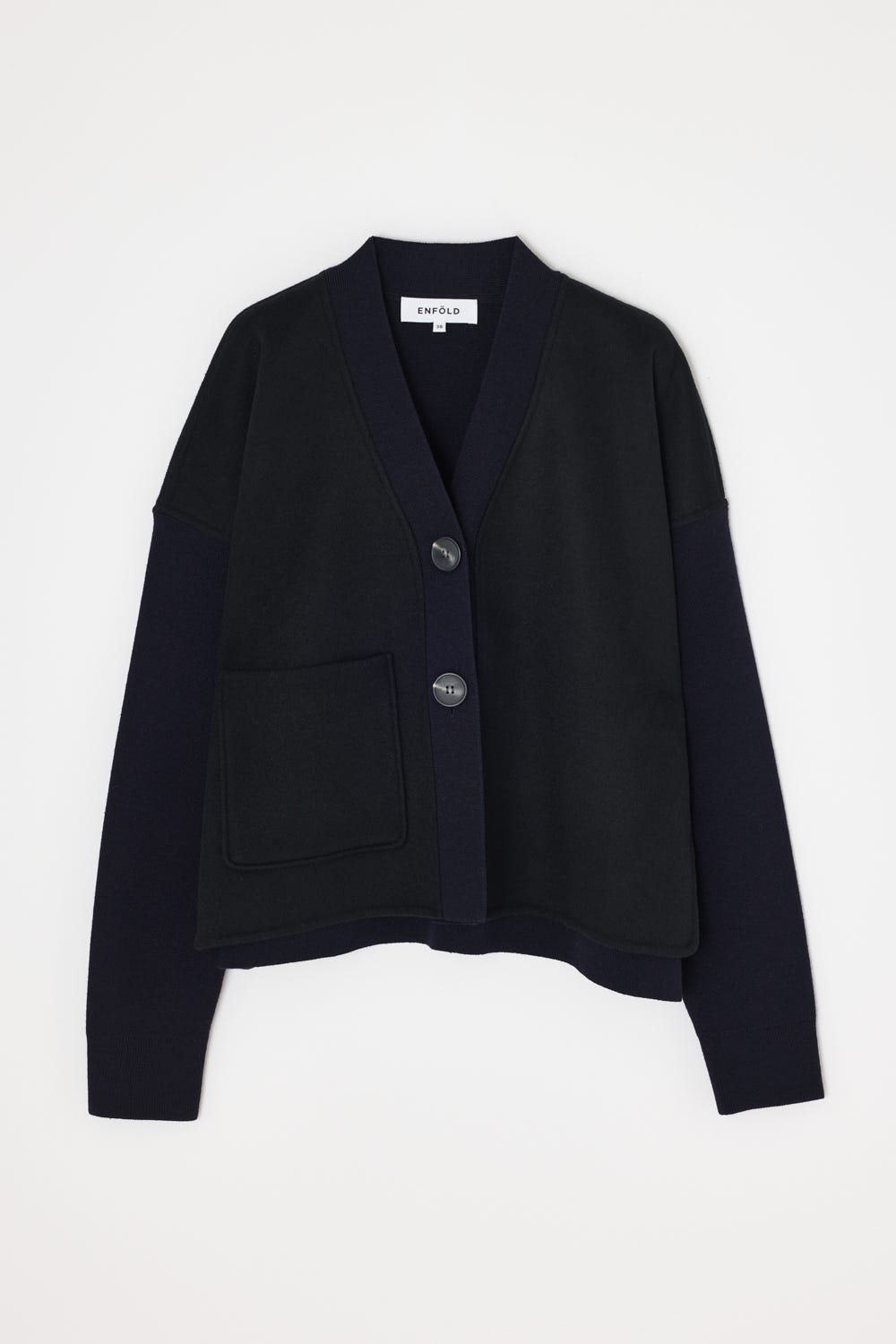 着用できる期間が長く使い勝手の良い”カーデ以上コート未満”のアイテムをENFÖLD定番の美しいウールリバー素材を使用してつくられたジャケット。