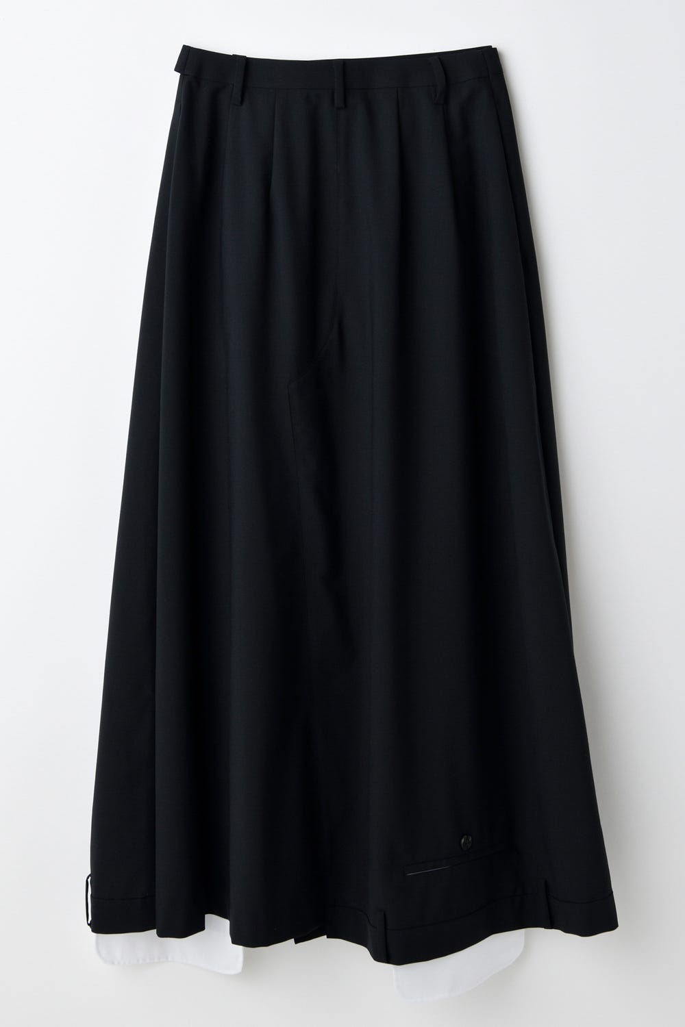 女性らしいエレガントなAラインシルエットのフレアスカートと男前でマニッシュなスーツトラウザーをリメイクしたかのようなディティールの対比がENFÖLDらしいユニークなアイテム。