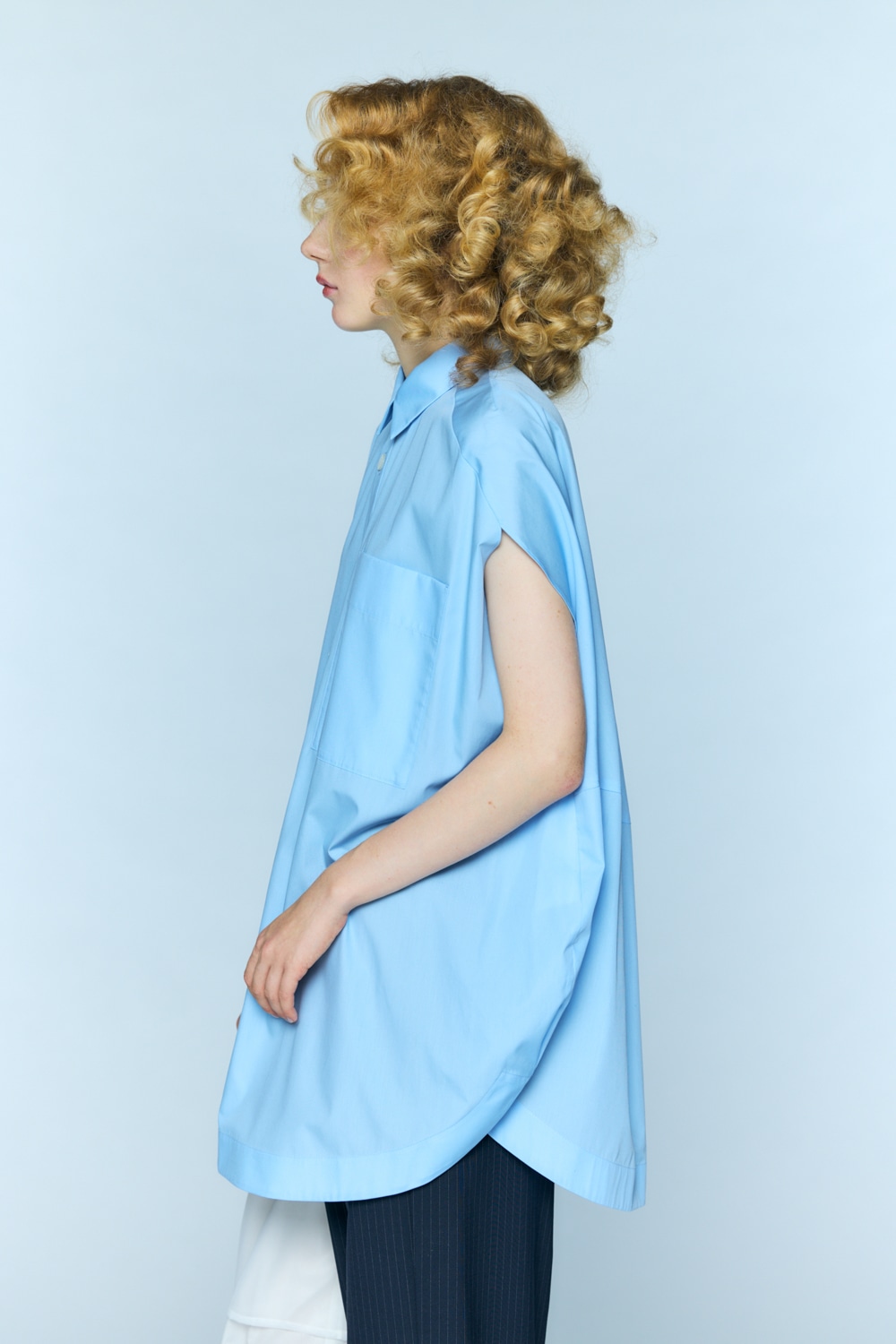 サークルシルエットがユニークなスレンチスリーブのゆったりとしたシャツ。