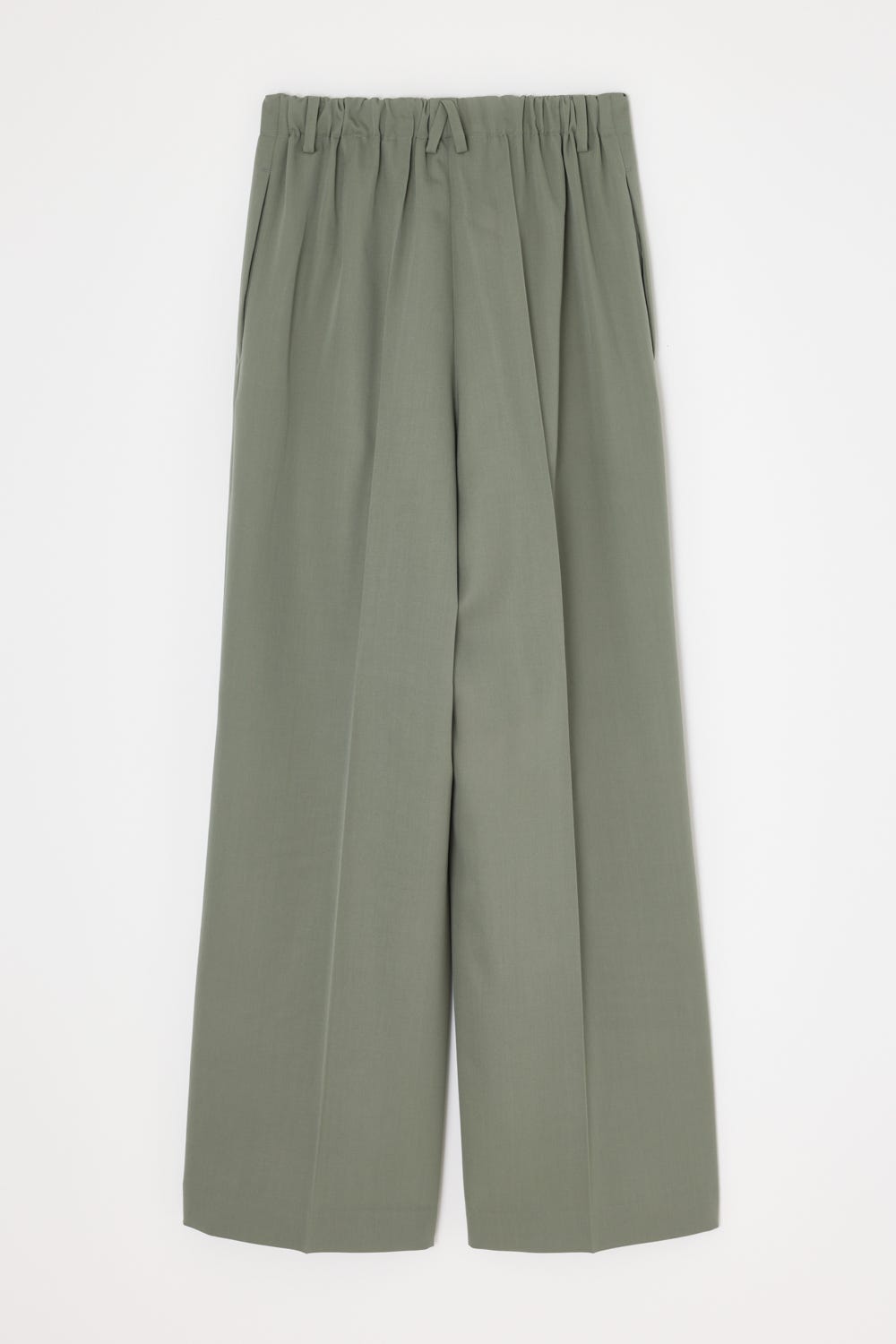ENFOLDらしいリラックスしたゴム入りのウエストですが、前開きタイプで着脱しやすく、カッチリした印象に。