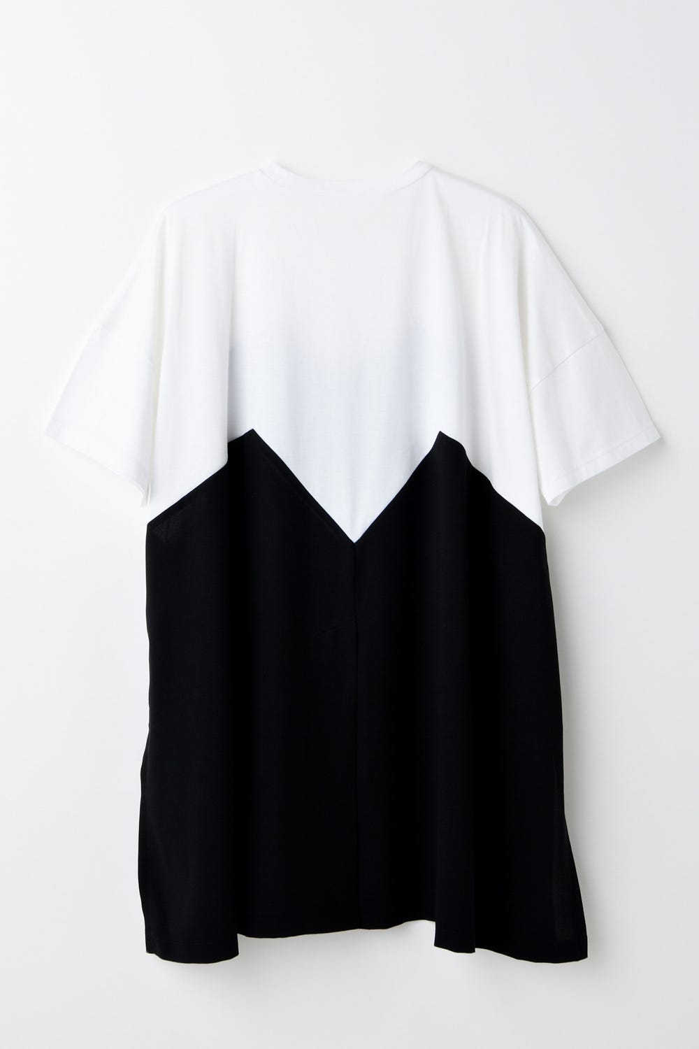 枚でスタイルが完成するドッキングデザインの新作は、ビスチェ型風シャツとスーツベストを重ね着しているかのような豪華なデザイン。