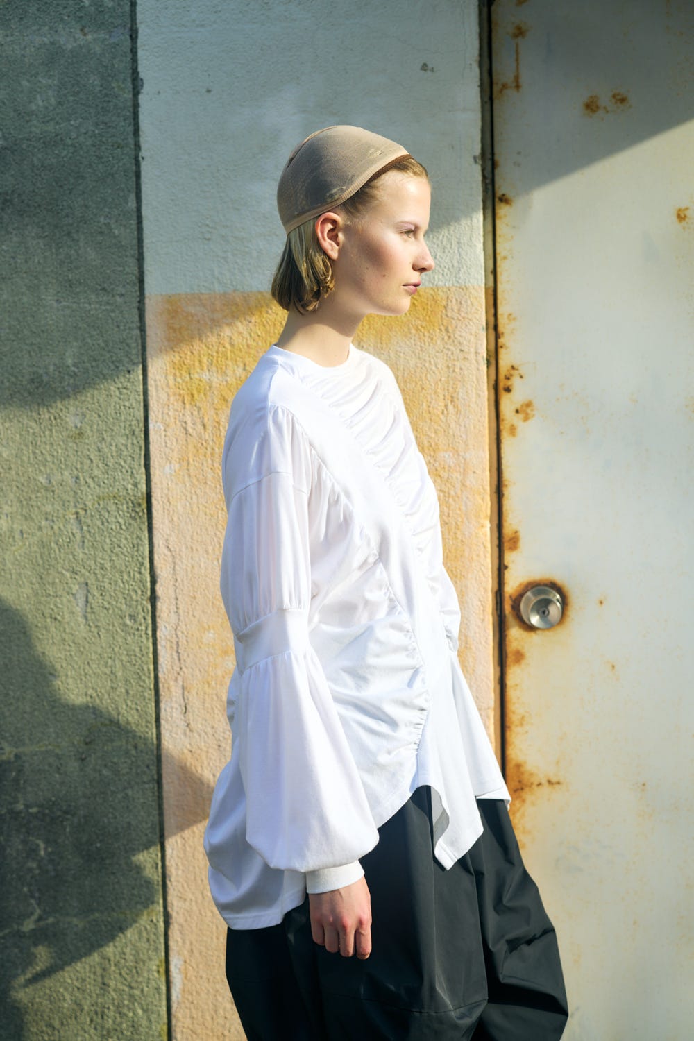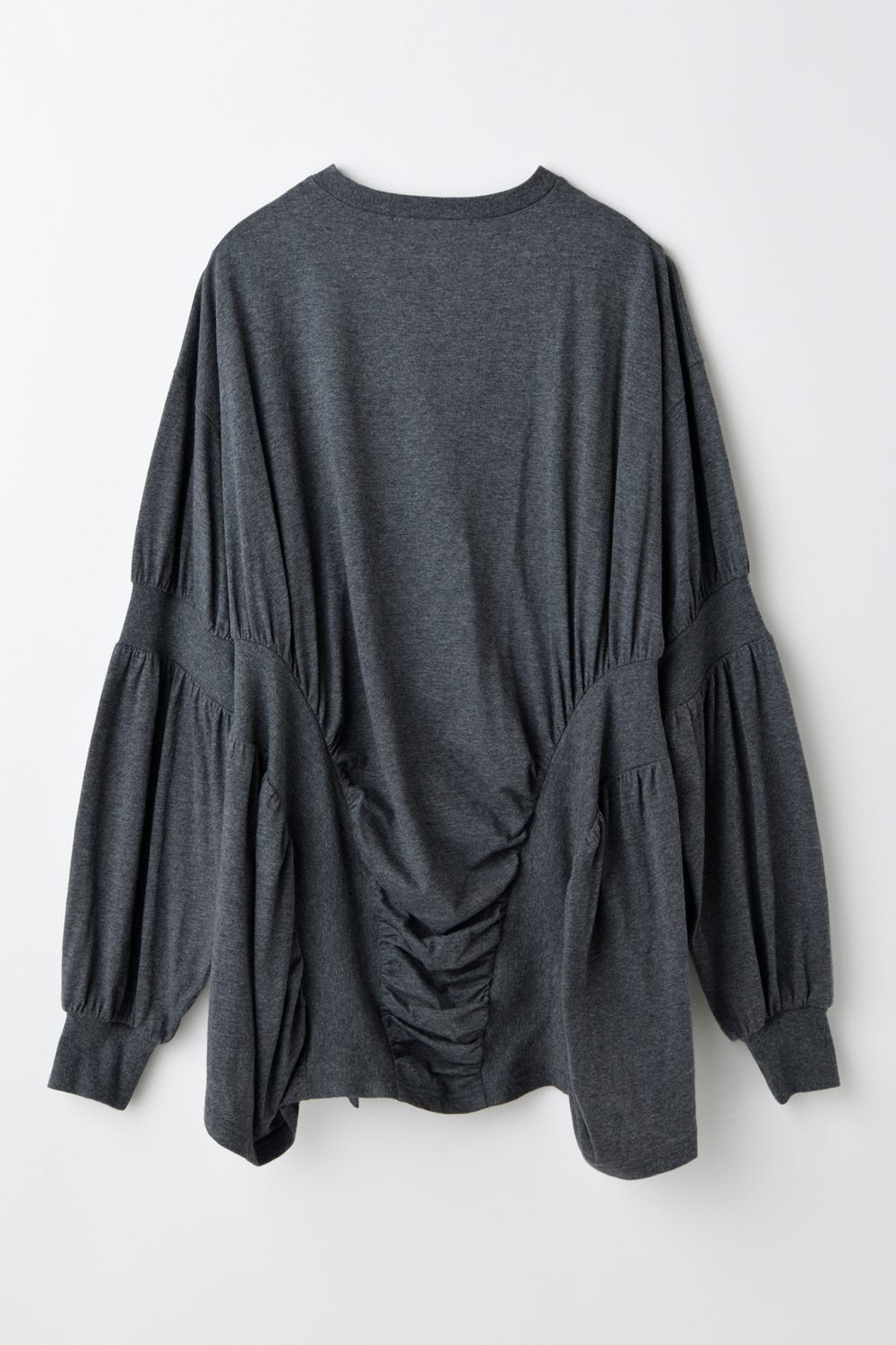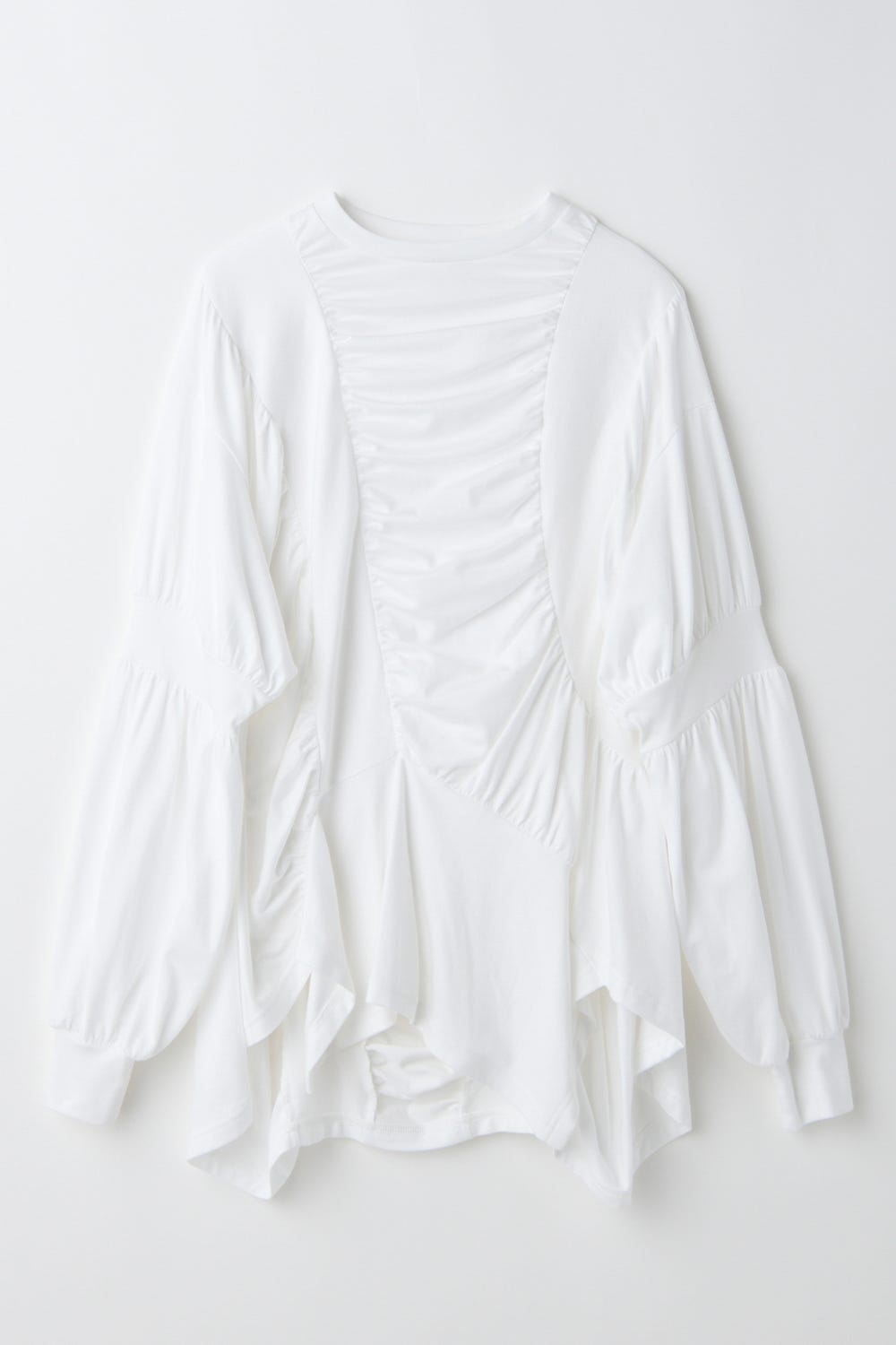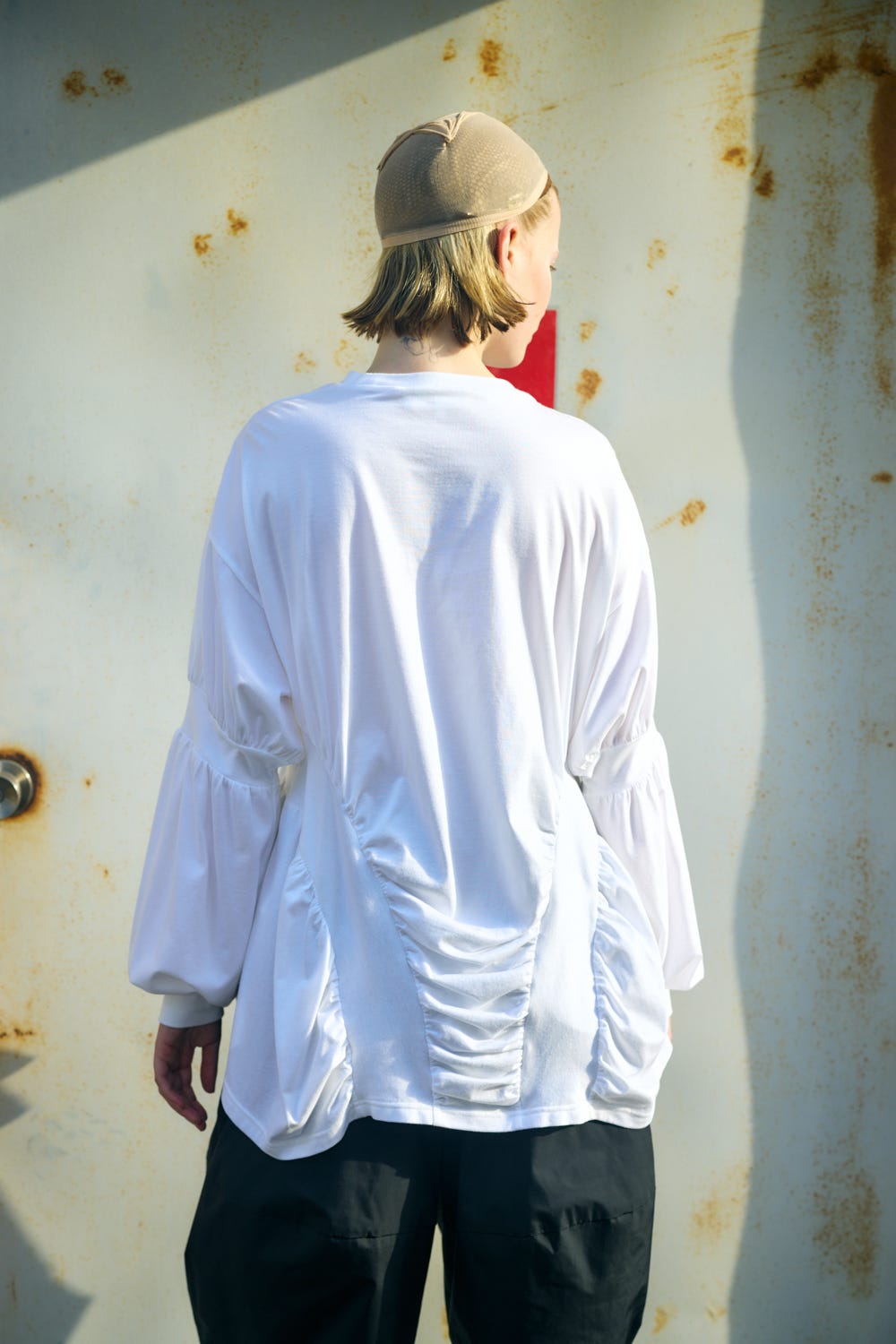 今季テーマ”Orchestra”より、音・曲調の強弱など波のある状態を表すように大胆に形がうねったカットソーの伸縮性を活かしたデザインロンT。