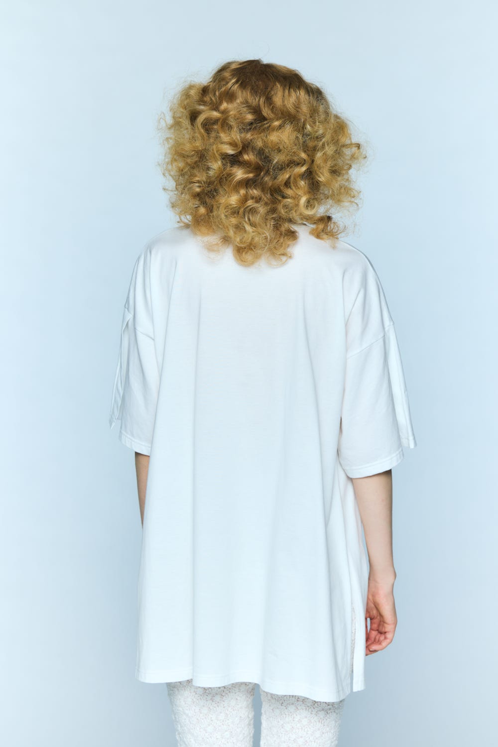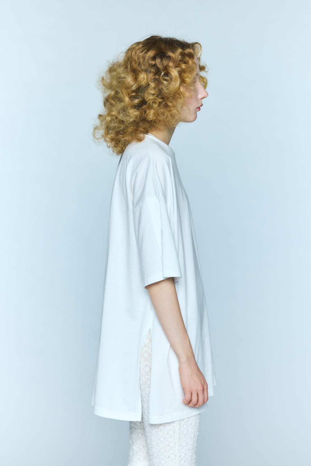 ヒップがすっぽり隠れるチュニック丈のTシャツは、大人っぽくエレガントなバランスを楽しくことができ、気になる腰まわりをカバーしてくれる丈でもあります。