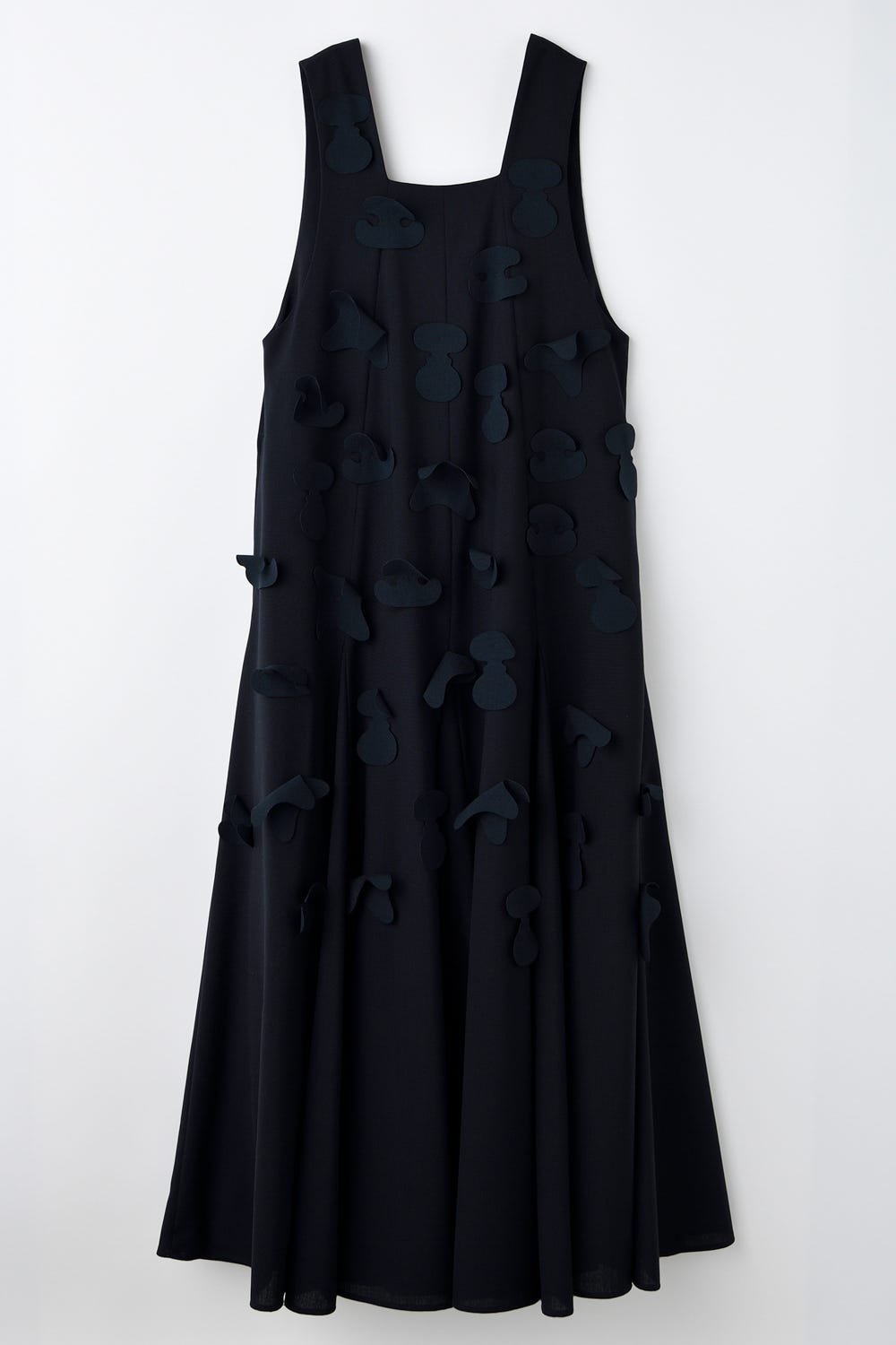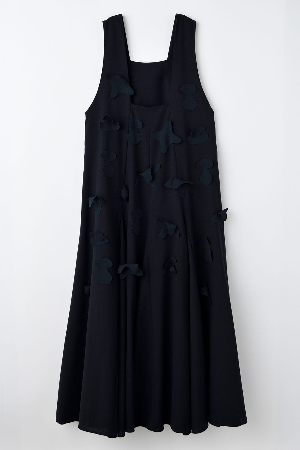 完璧な造形美、美しいバランスを持つ名作の椅子のシルエットをモチーフにしてランダムに散りばめた、ボリュームあるジャンパースカート。