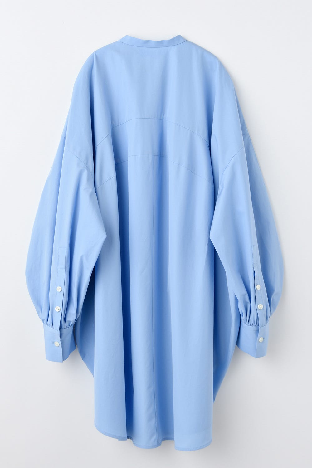 ENFÖLDの定番「シャツ+スカート+ベストやニット」のレイヤードスタイルを新しく見せるあえて少し長めのチュニック丈のシャツ。
