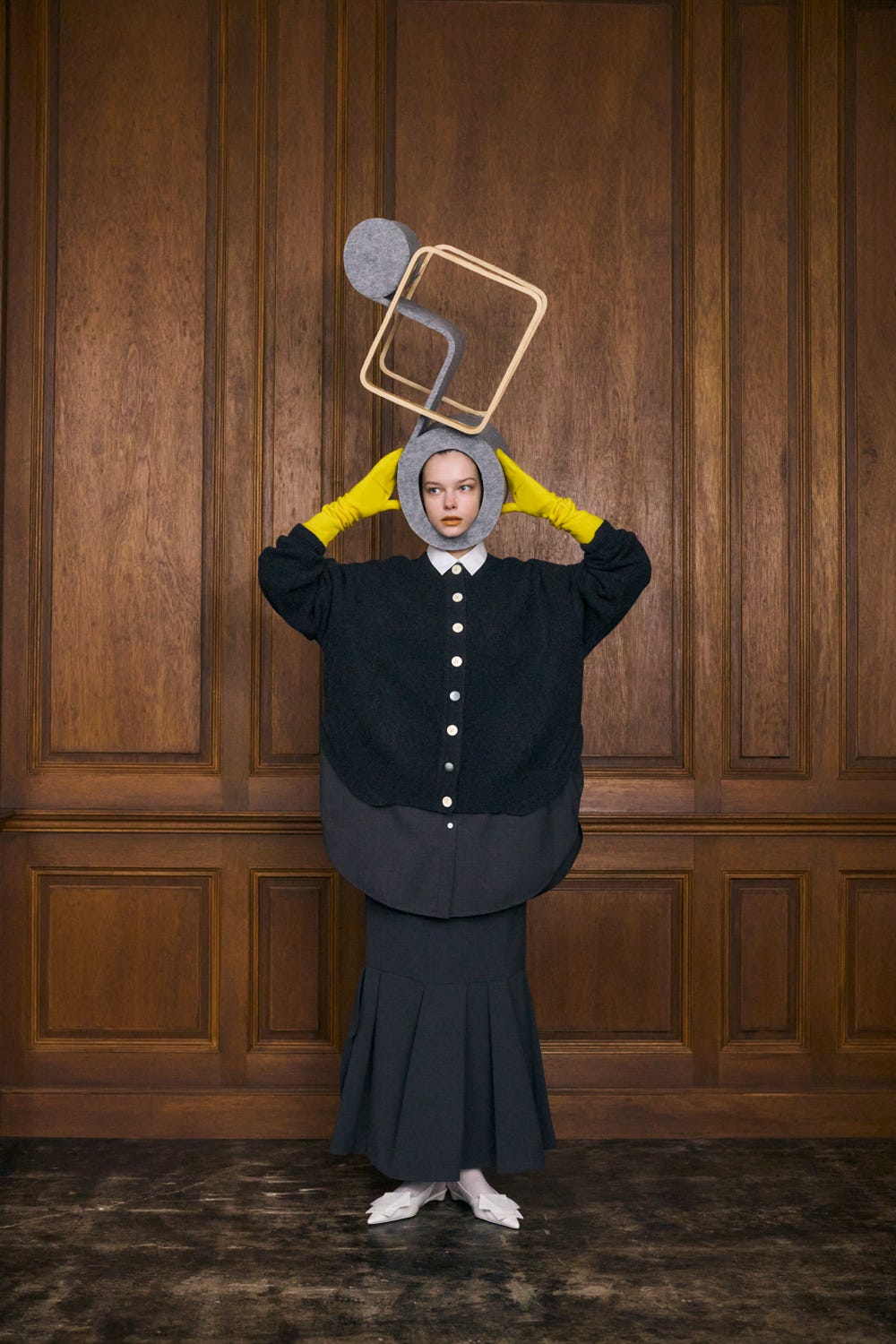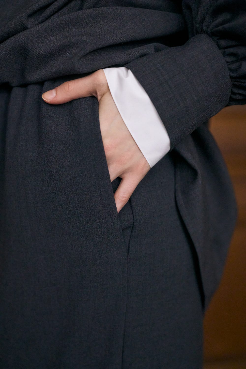 切替位置から裾に向かって広がっているヘムデザインはふつうのフレアスカートとは違った表情を持ち、新鮮なスタイリングバランスになります。