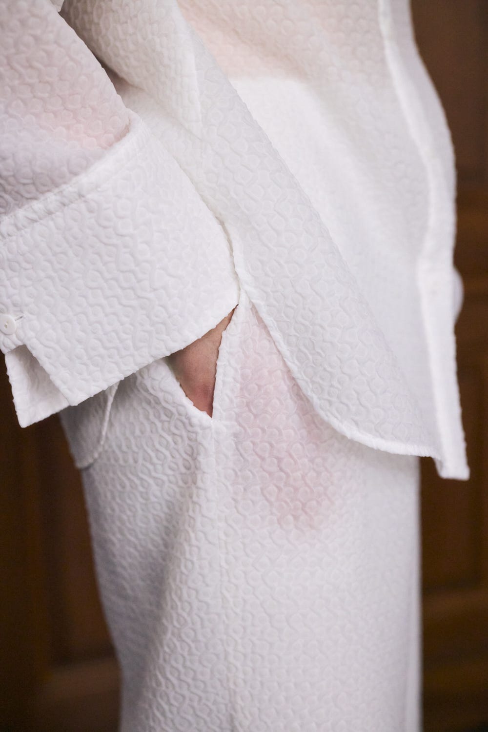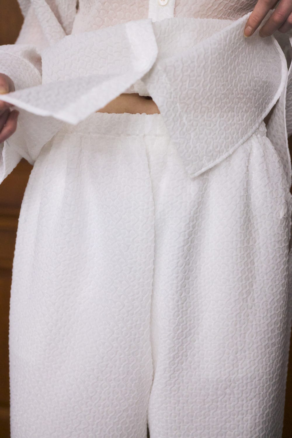 今季テーマ「Chair」より、椅子を梱包する際に使用される”気泡緩衝材”をイメージして作ったシュリンク素材シリーズ。