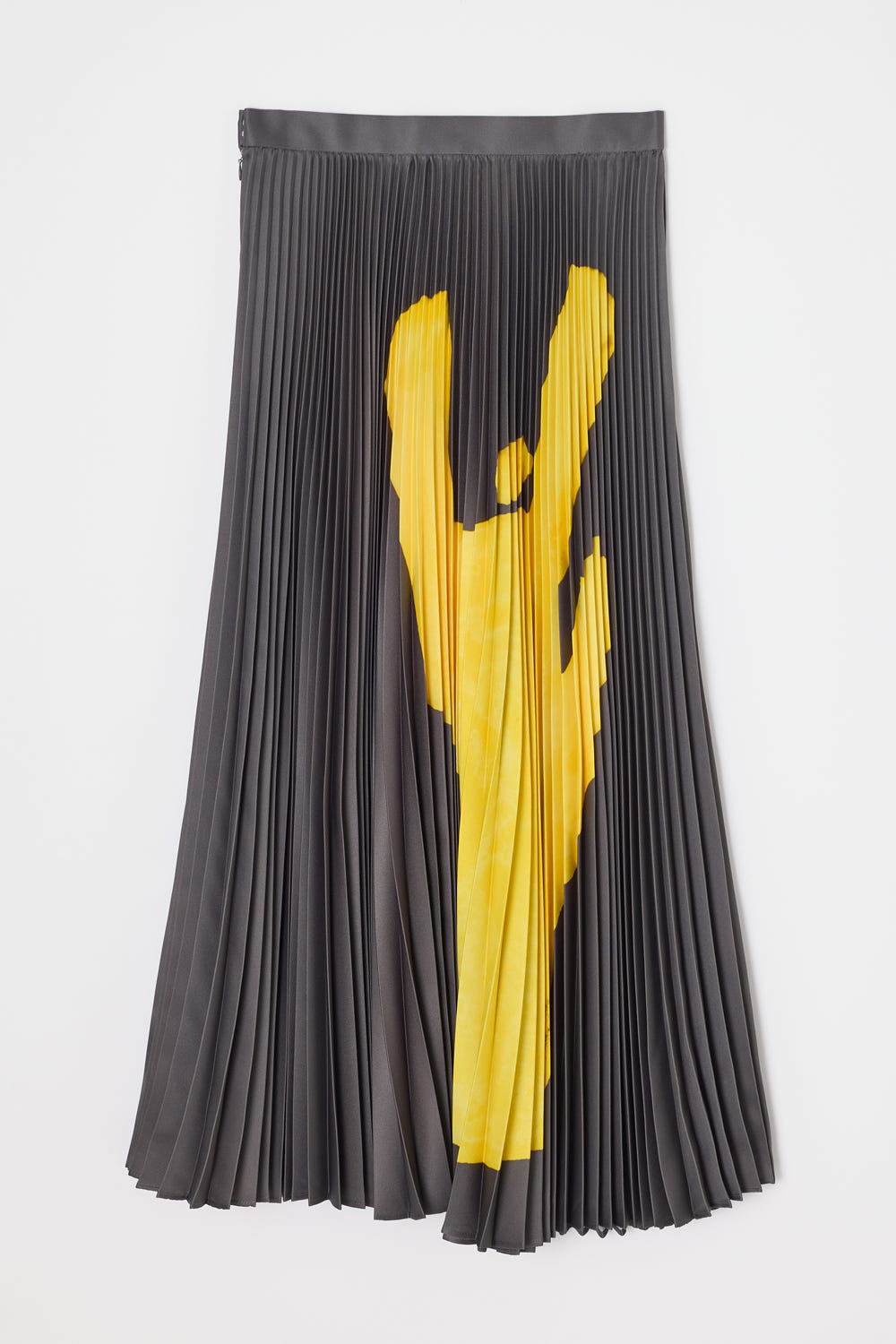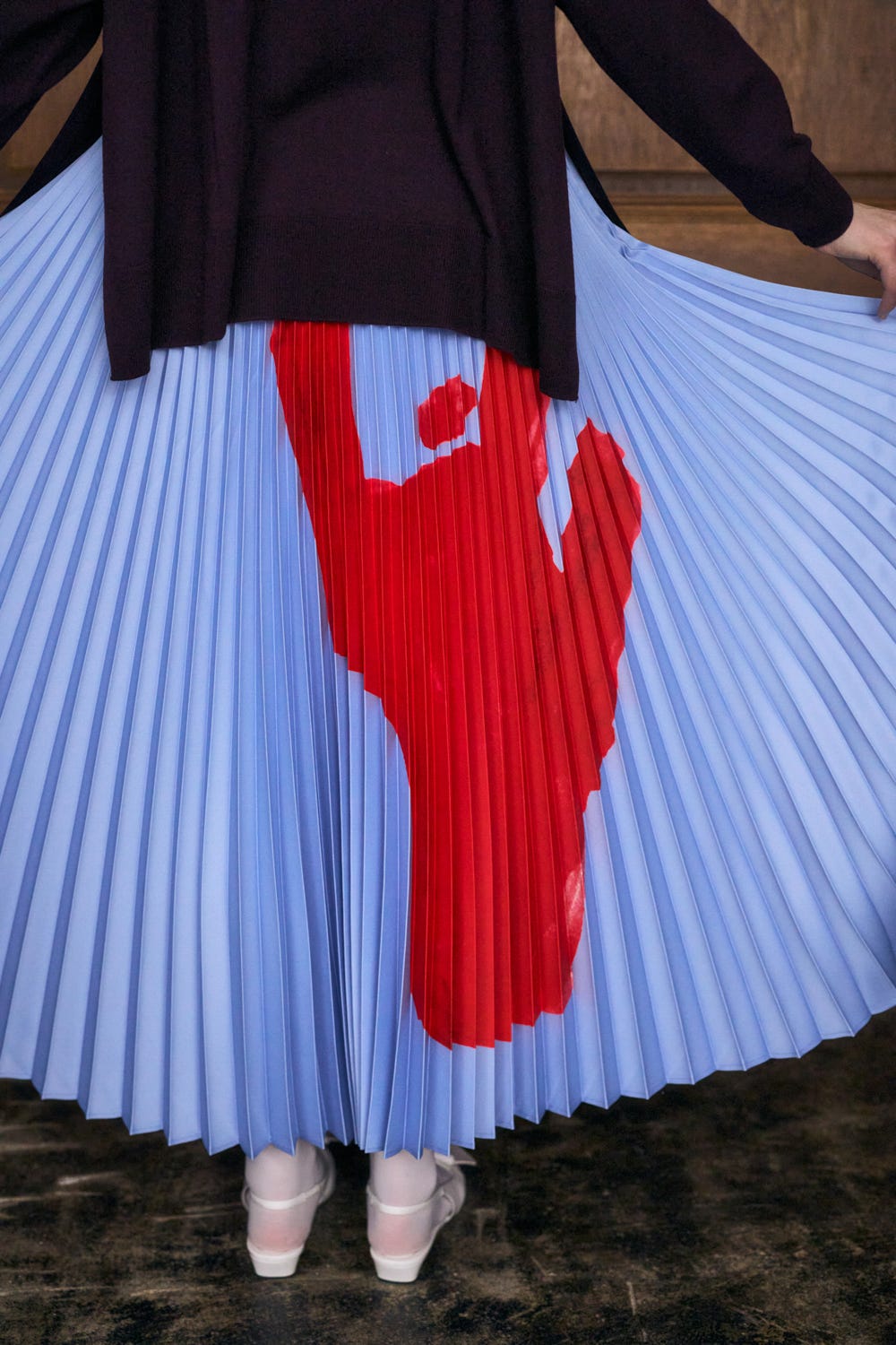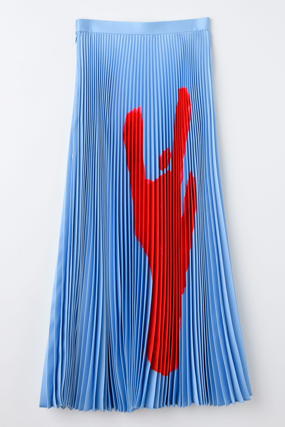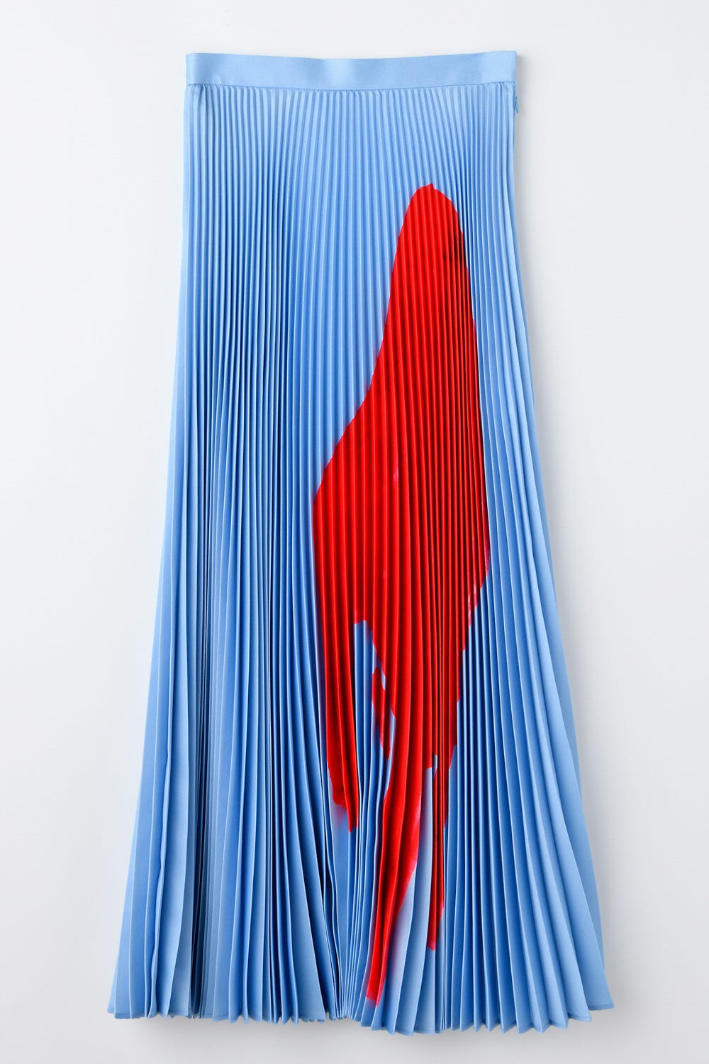 今季テーマの「Chair」を象徴するような大胆なプリントが目を惹くプリーツスカート。