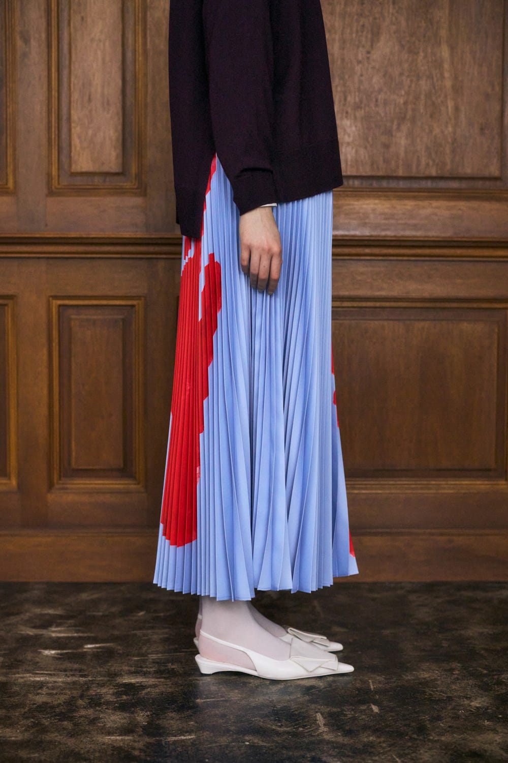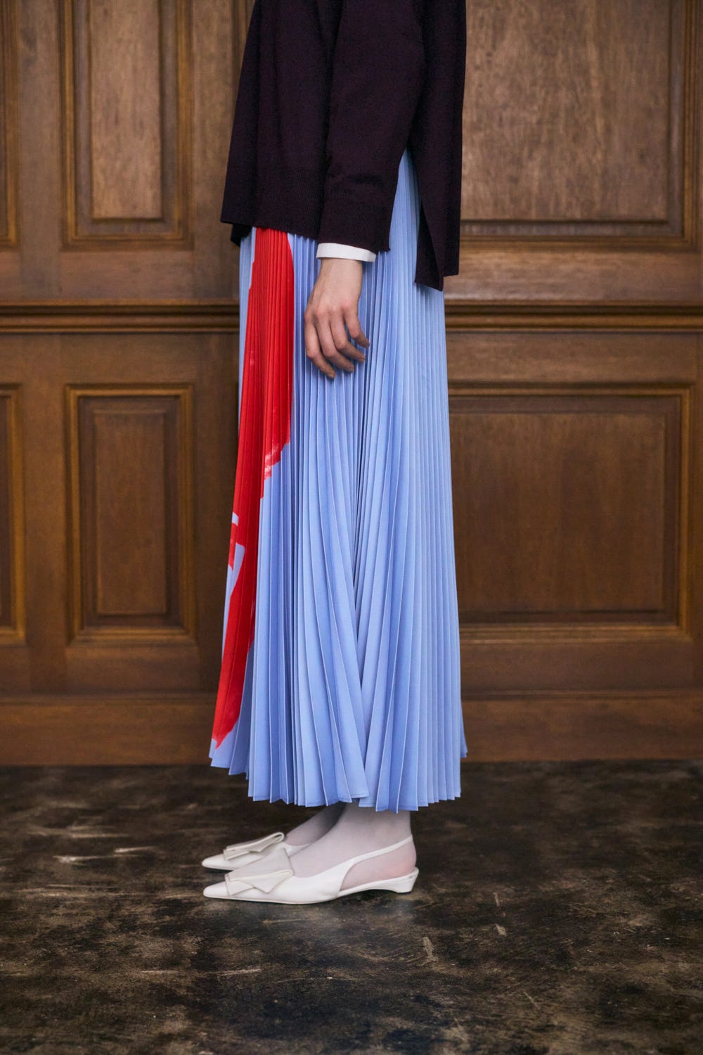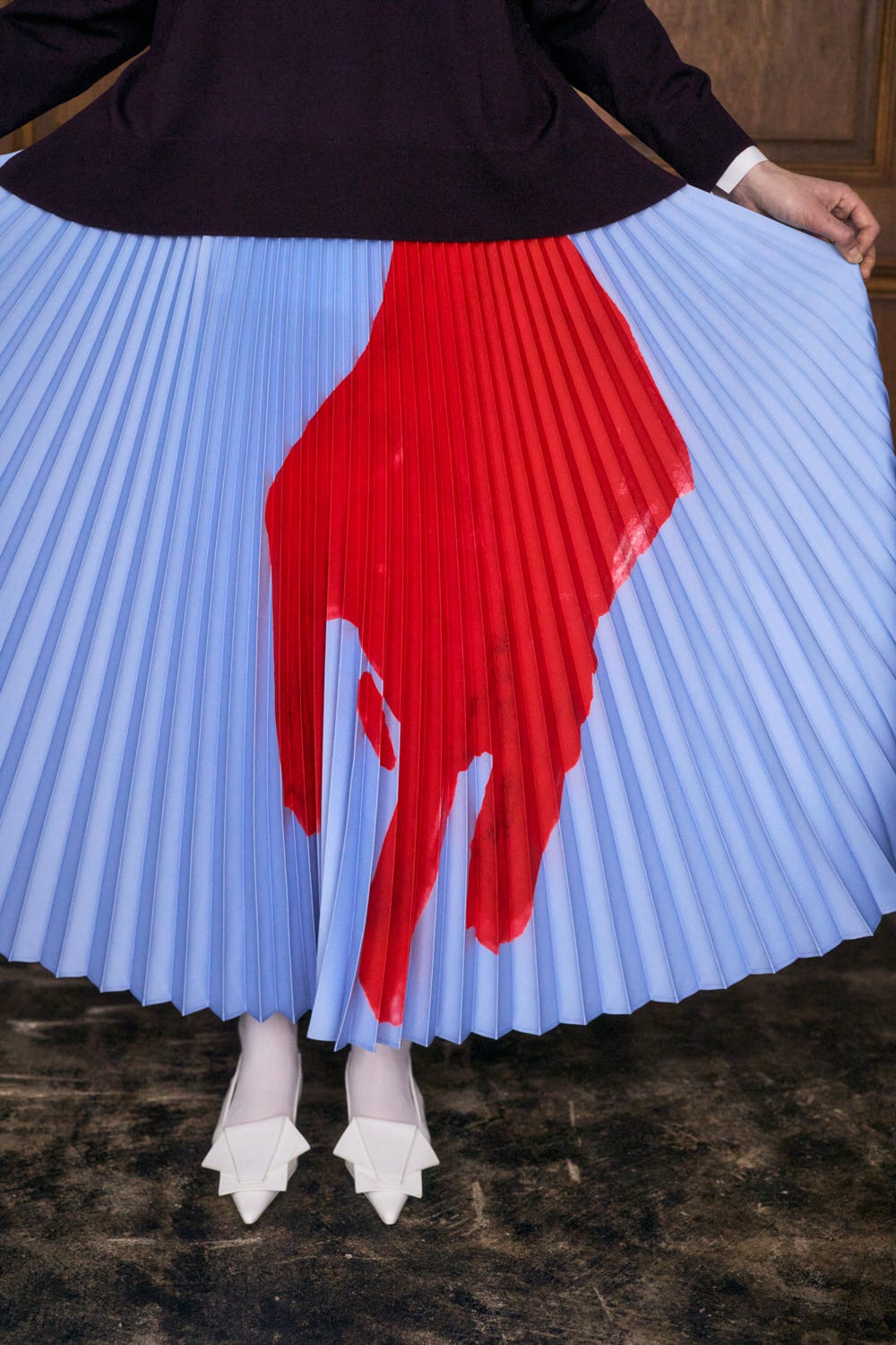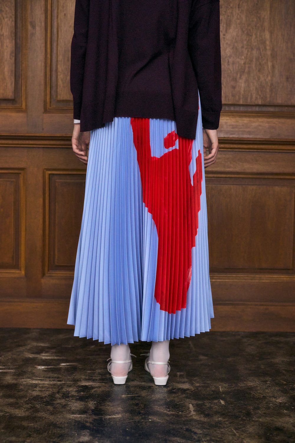 今季テーマの「Chair」を象徴するような大胆なプリントが目を惹くプリーツスカート。