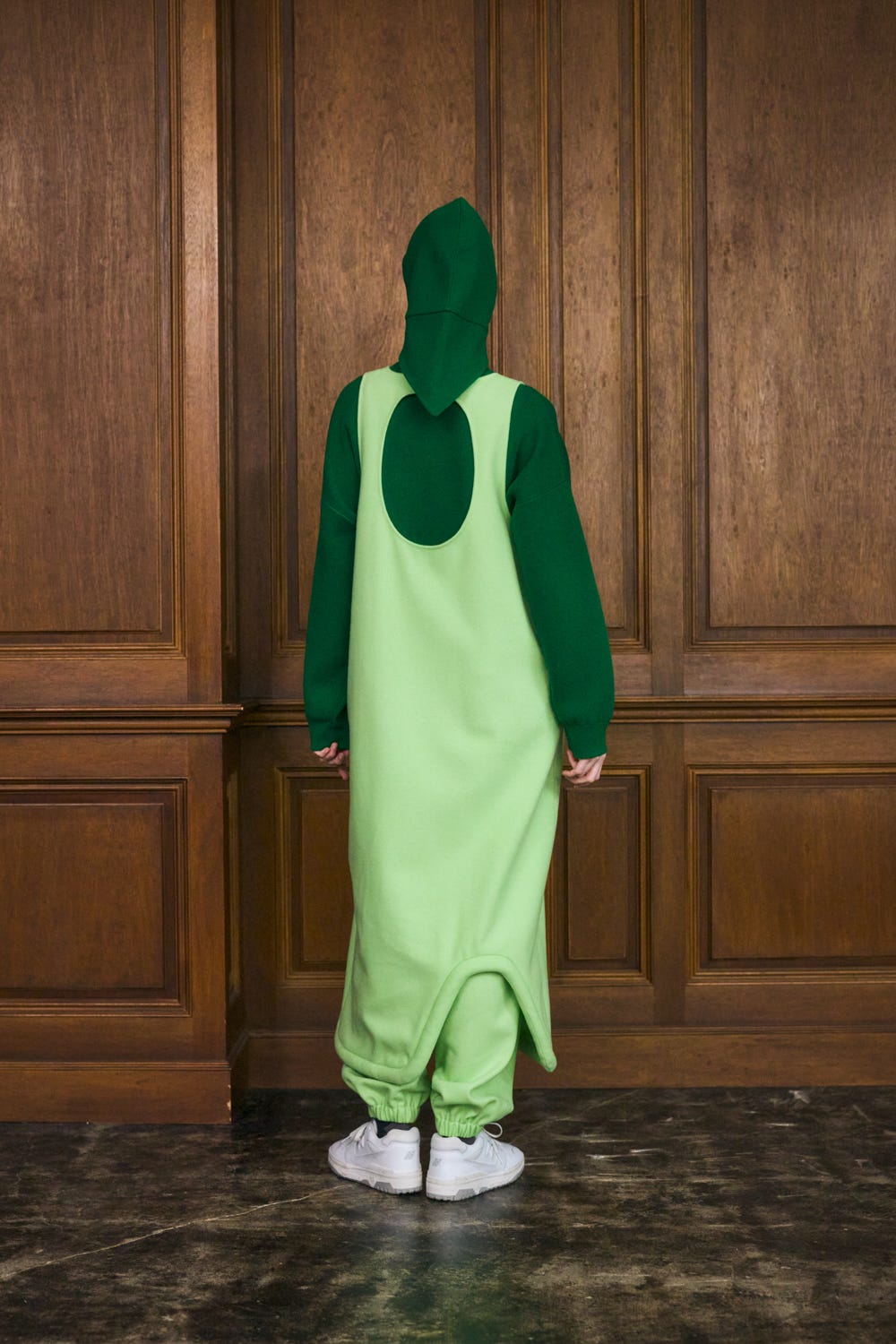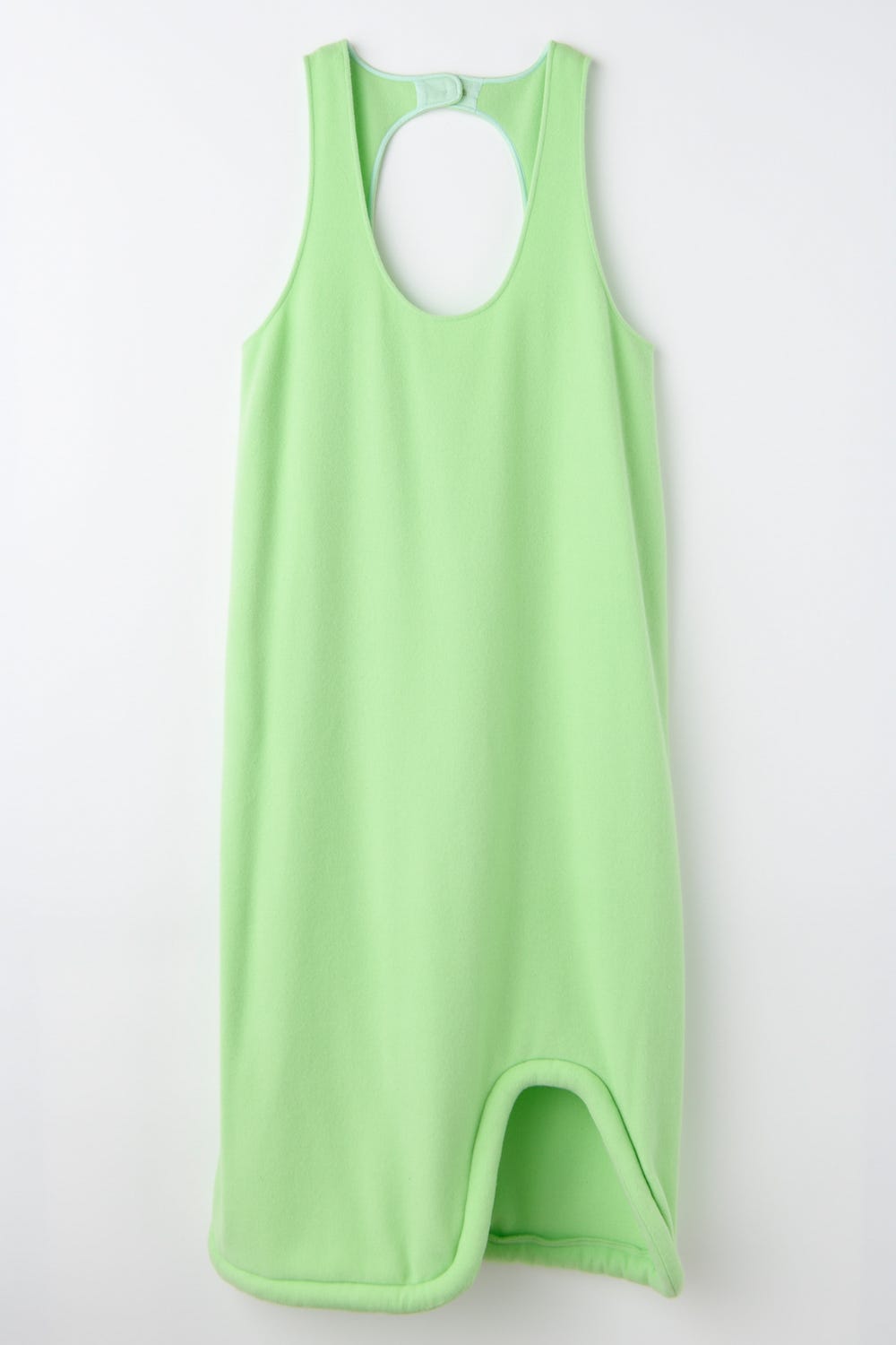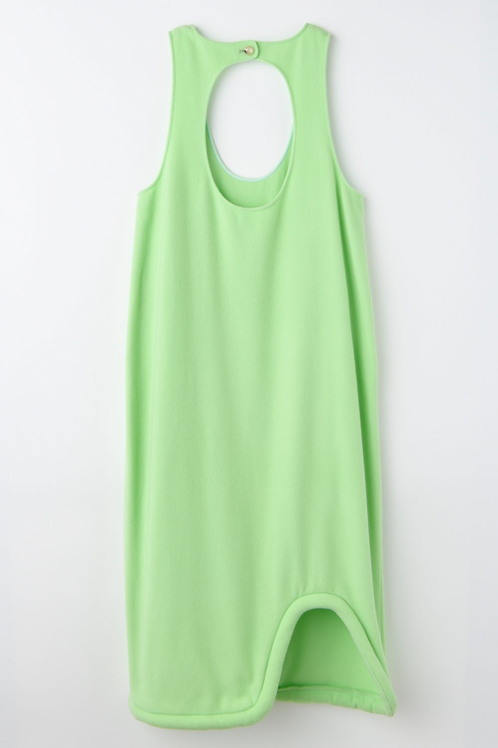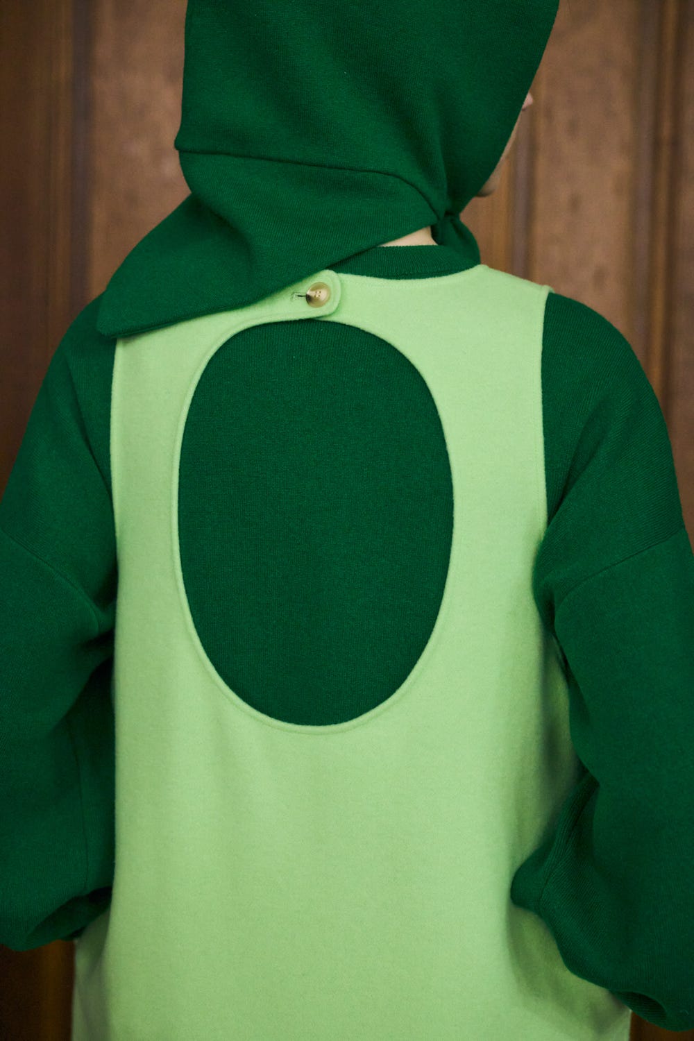 ミニマルに美しい仕上がりになるよう上半身はディティールをそぎ落とし、バックスタイルには抜け感を感じられる大きなホールを開けています。