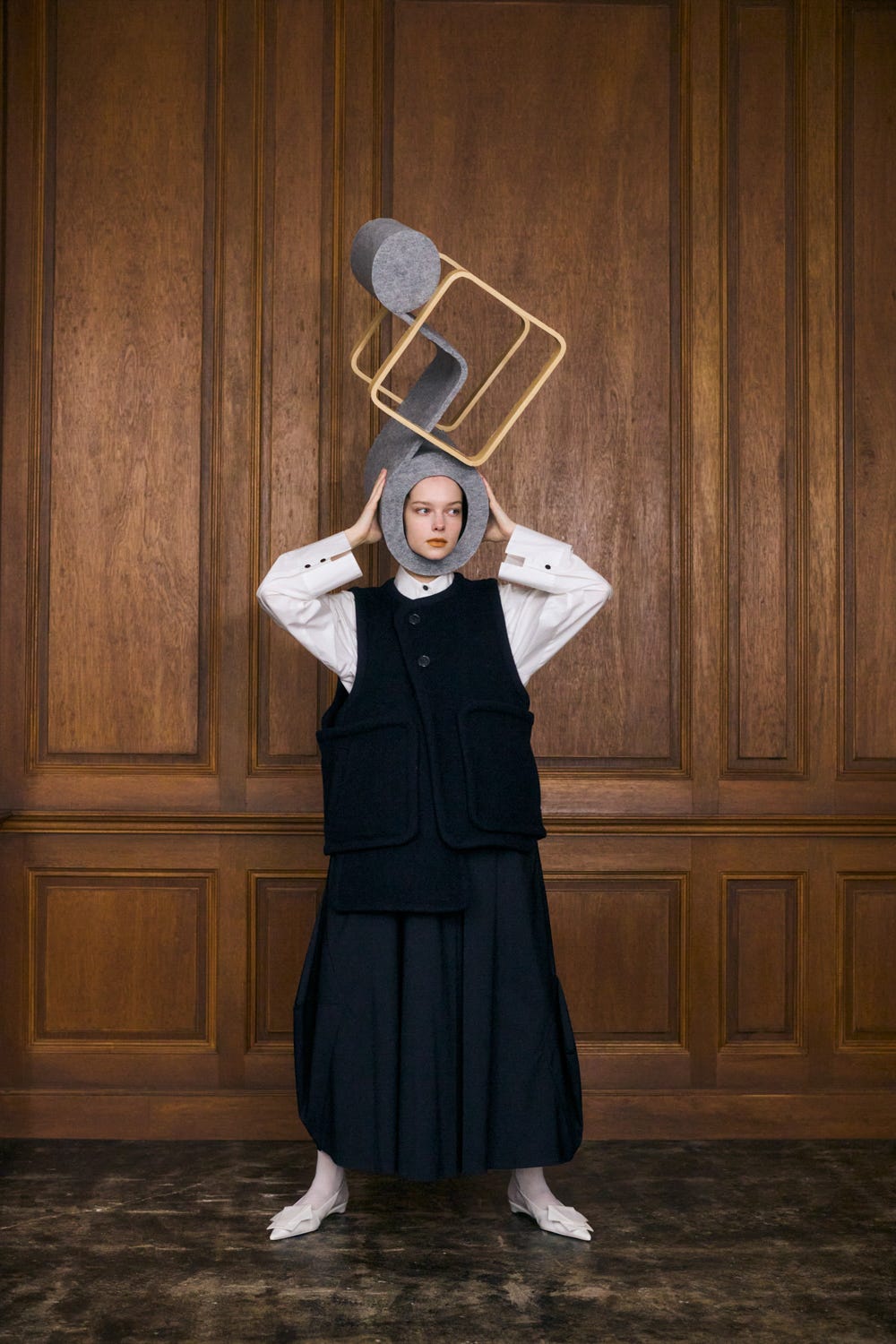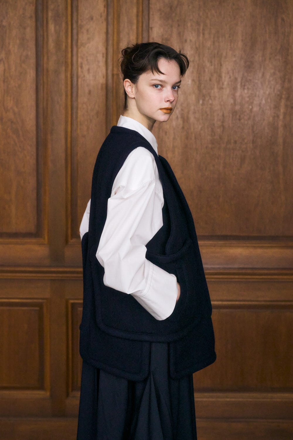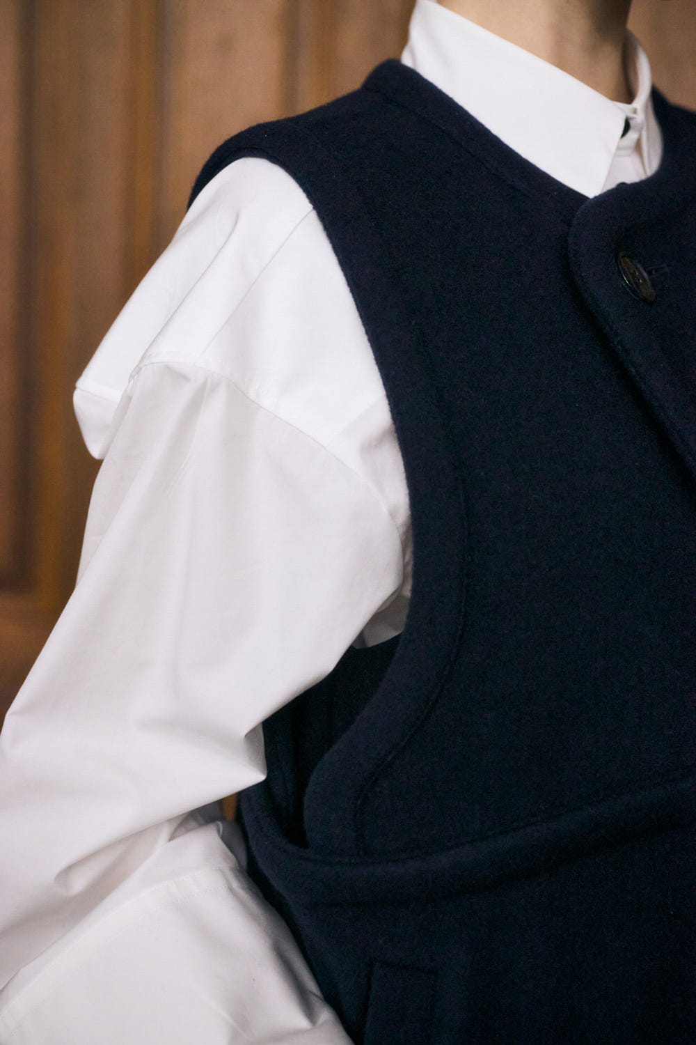 背もたれまで布で覆われた椅子をイメージ太めのパイピングで囲ったBOXベスト。