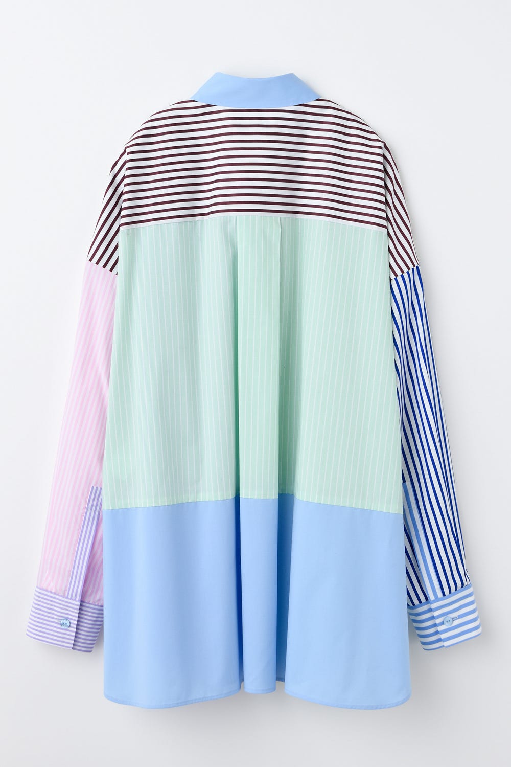 8種類の生地で構成した、カラフルなBIGシャツは、1枚での存在感が強く、暗くなりがちな冬のスタイルを華やかに彩ってくれます。