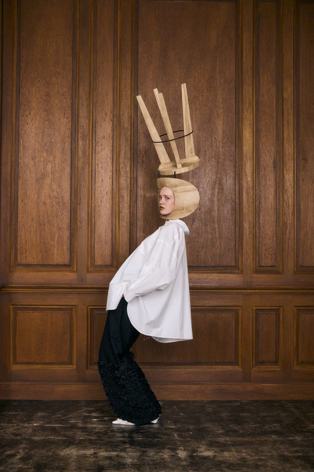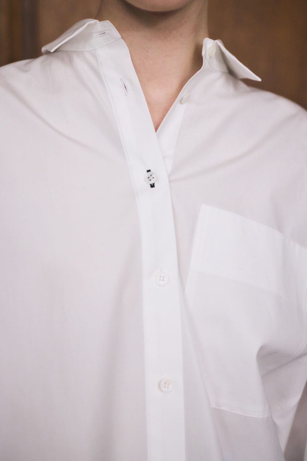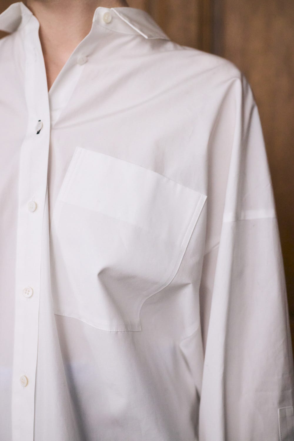 着物の抜き衿をイメージした”うなじ”を見せる、首を後ろに抜いて着るタイプのユニークなパターンで作られたBIGシルエットシャツ。
