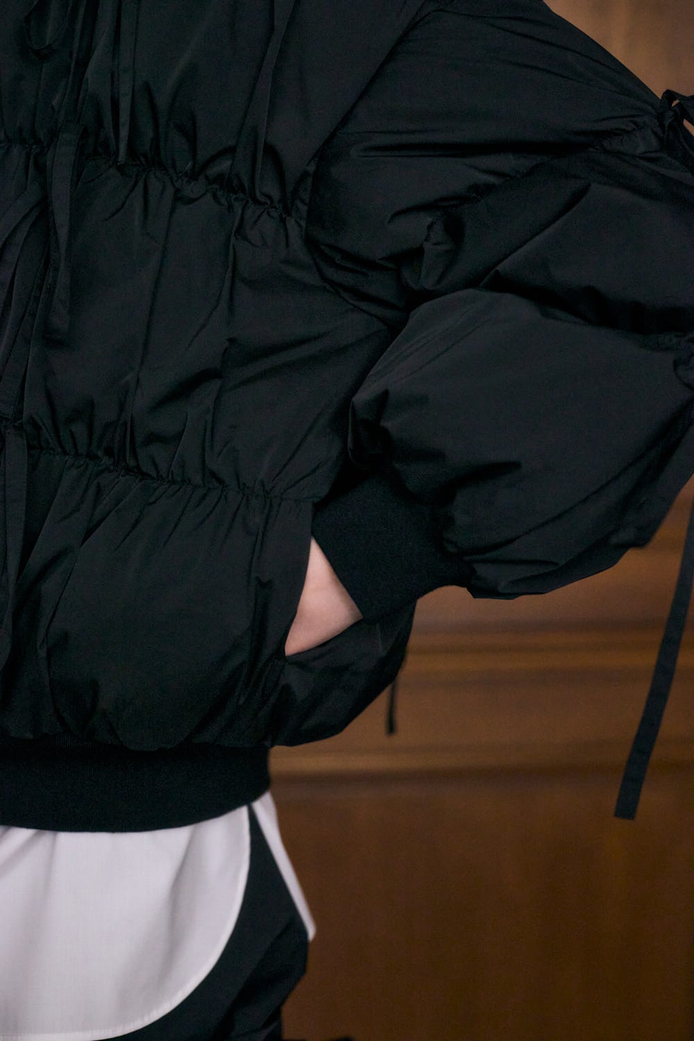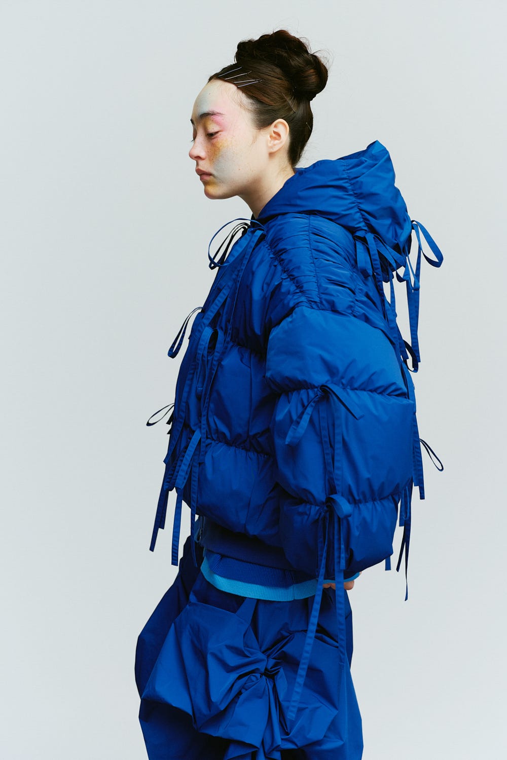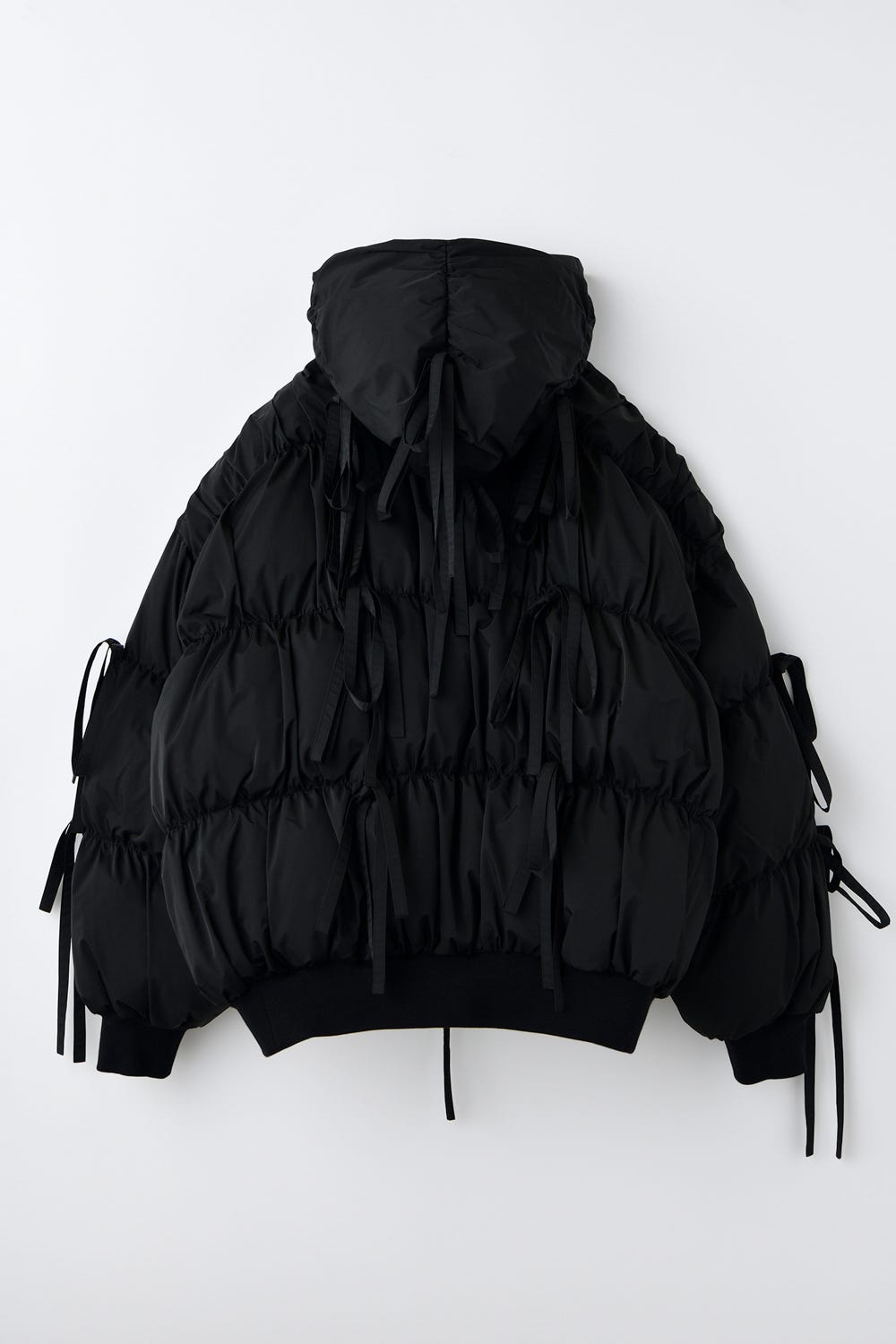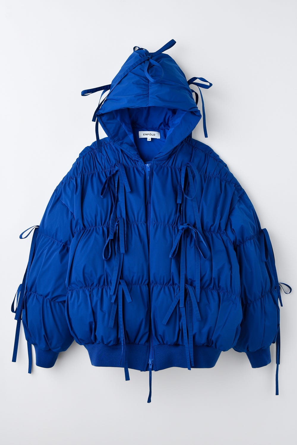 リボンが付いた椅子のクッションをイメージしたダウンジャケット。
