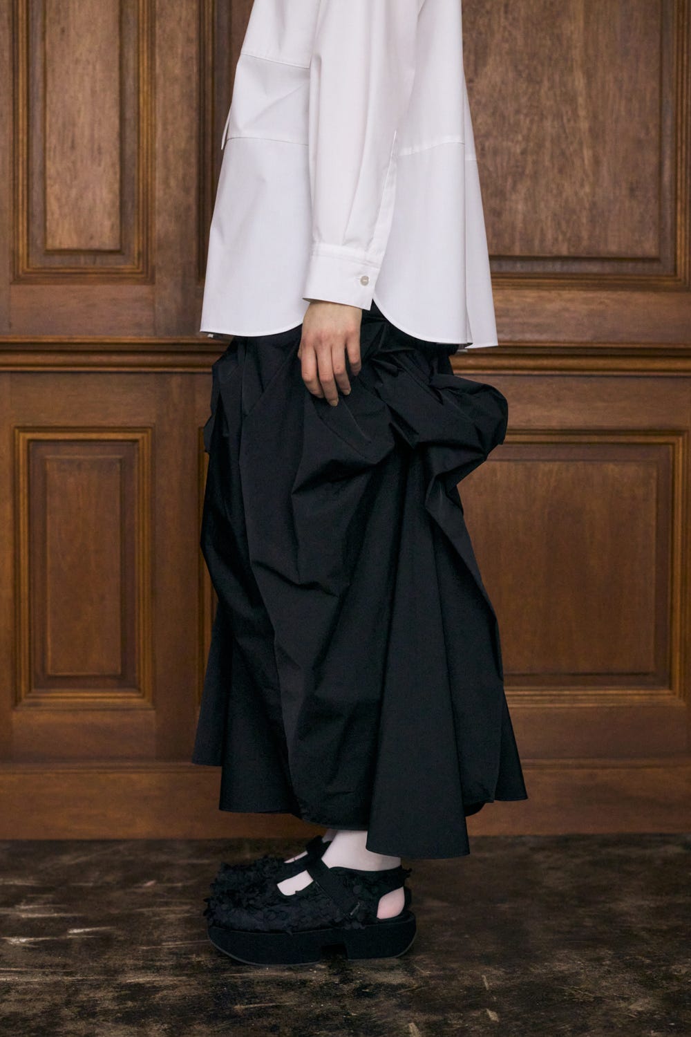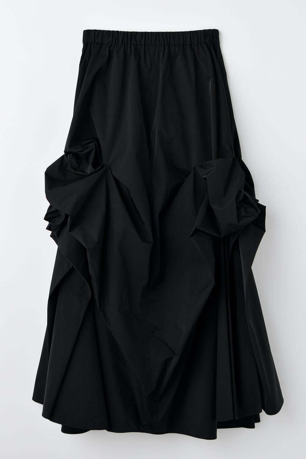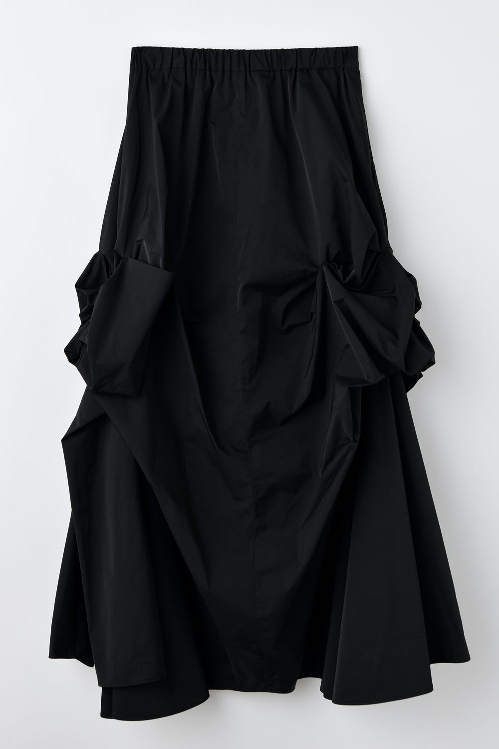 分量をたっぷり使用したリボンを思わすタックディティールのスカート。