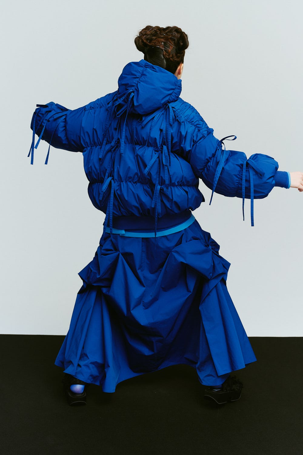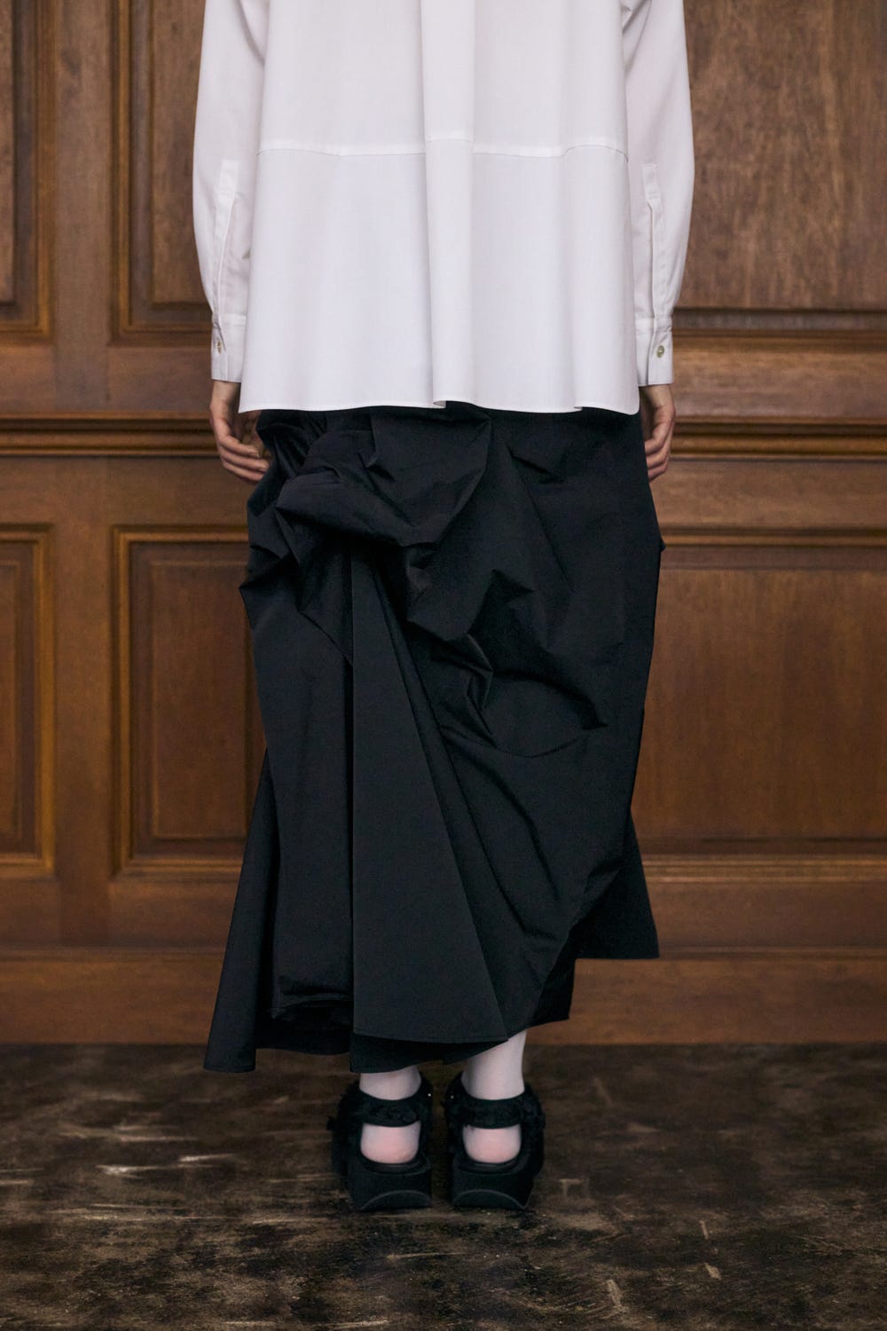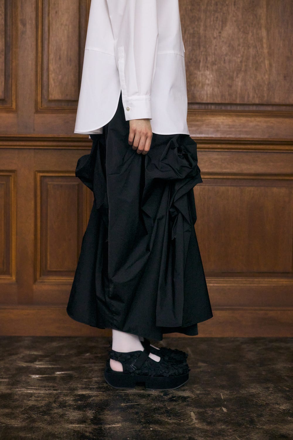 分量をたっぷり使用したリボンを思わすタックディティールのスカート。