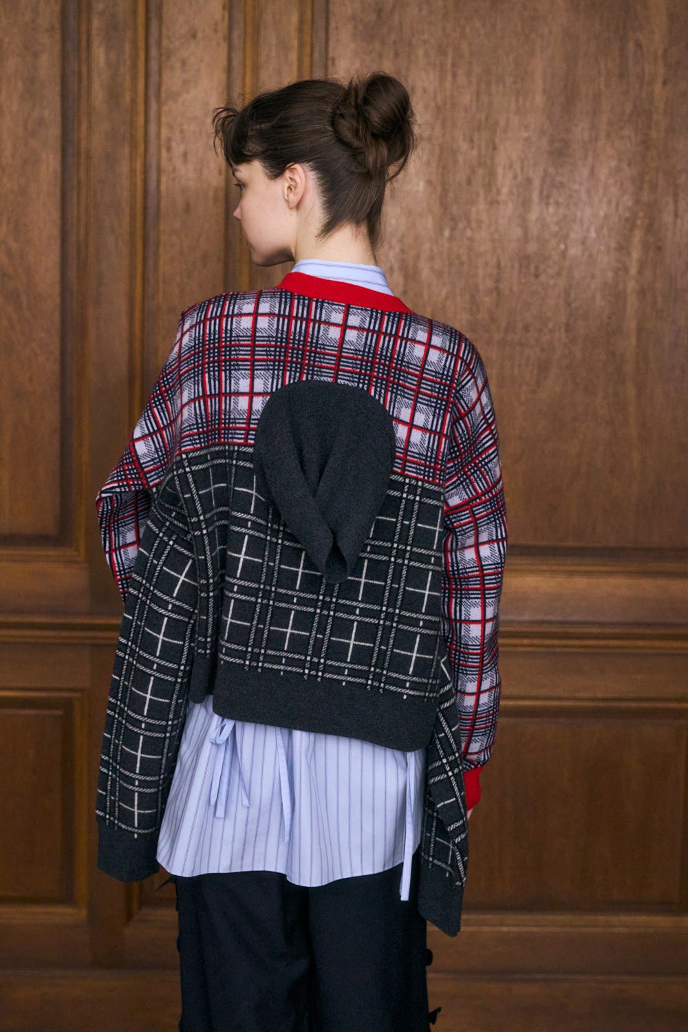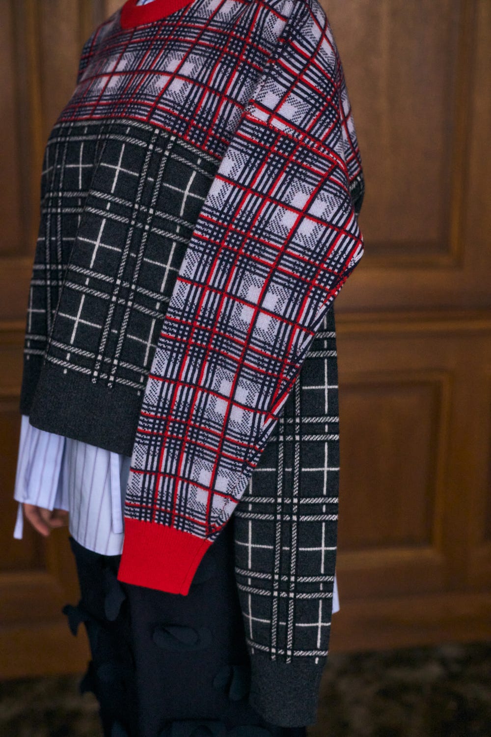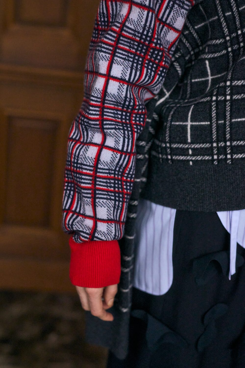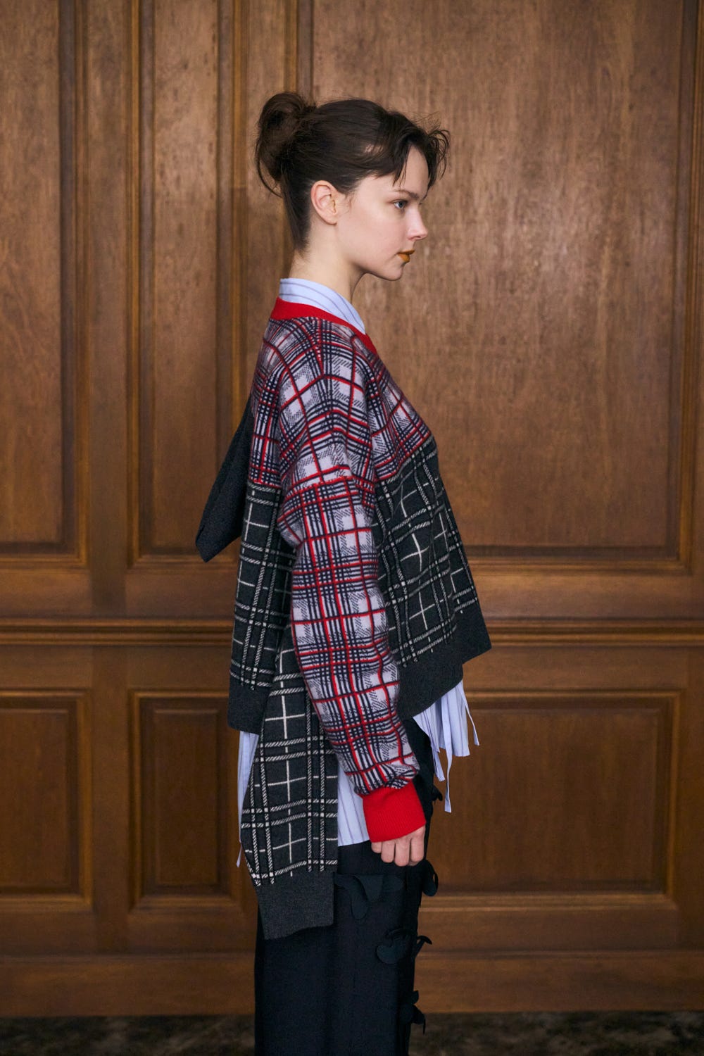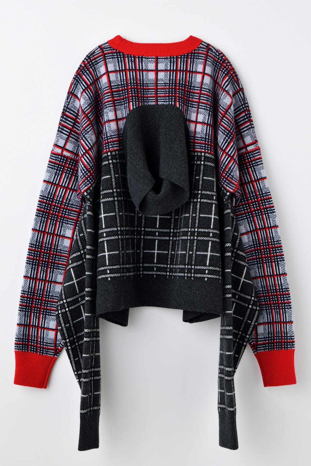 袖を通すとタートルネックショートプルオーバーとして1way、クルーネックのドレーププルオーバーとして2way、袖を通さずそのままショールのように肩にかけて3way、その日のスタイリングで選べる着方が新しいデザインアイテムです。