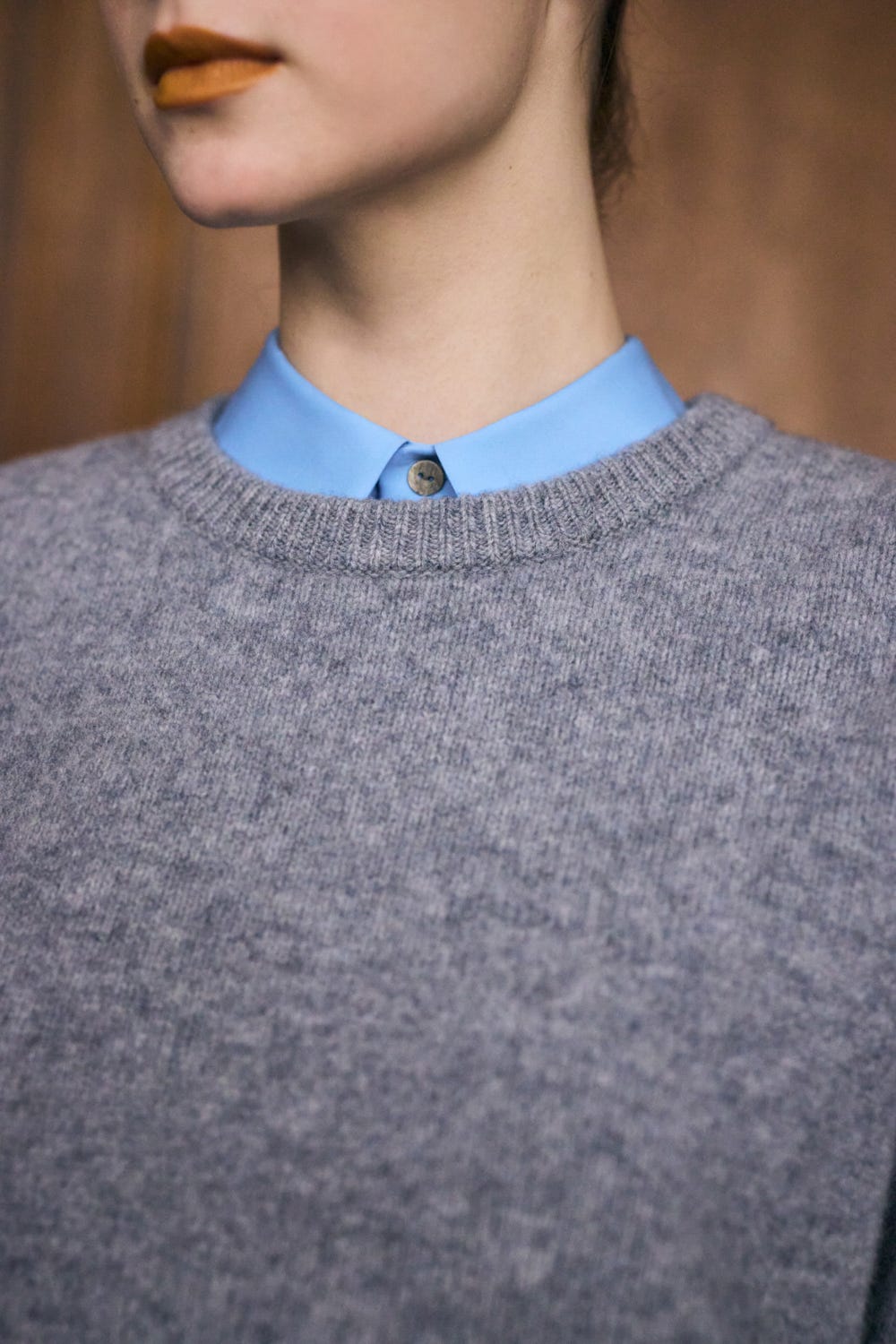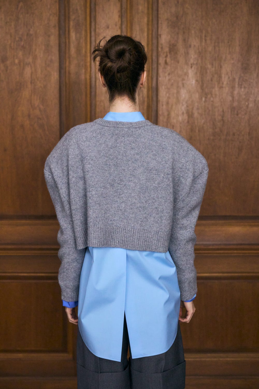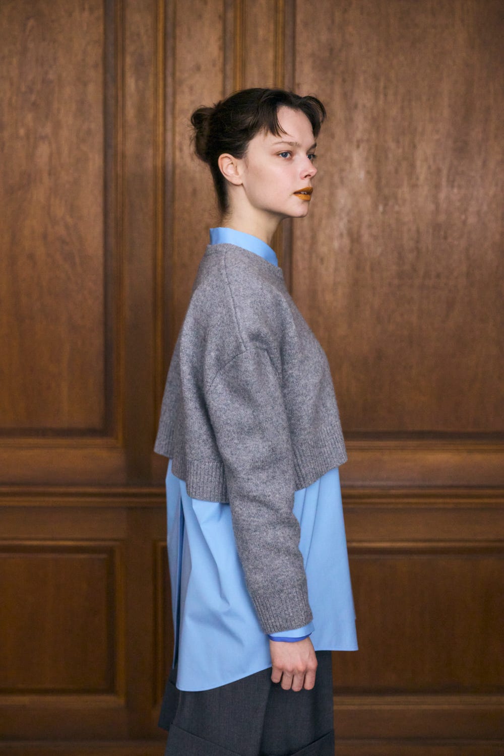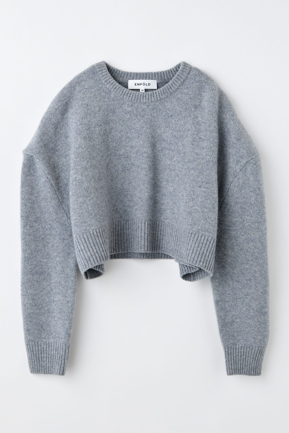 しっかりとした肉感でメンズテーラードのシルエットをニットに落とし込んだクロップドニットプルオーバー。