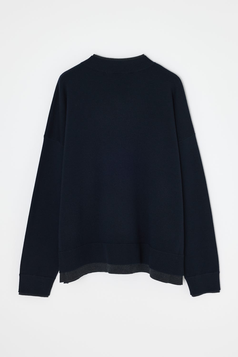 定番カシミアタッチの新作はVネックプルオーバーを2枚重ね着しているかのようなディティールが特徴的なプルオーバー。