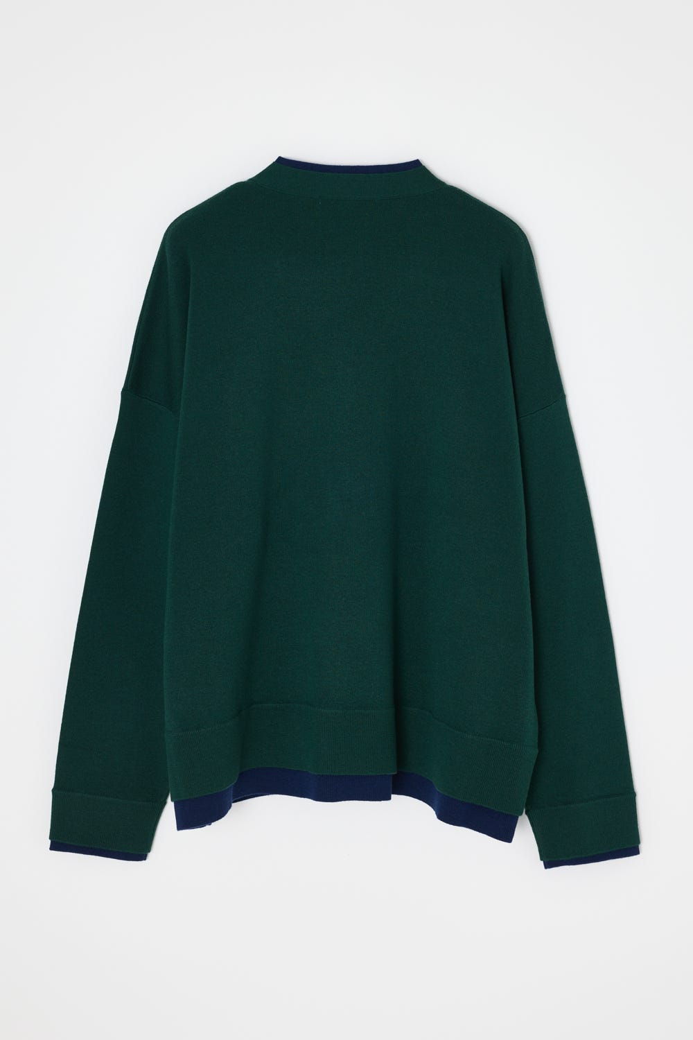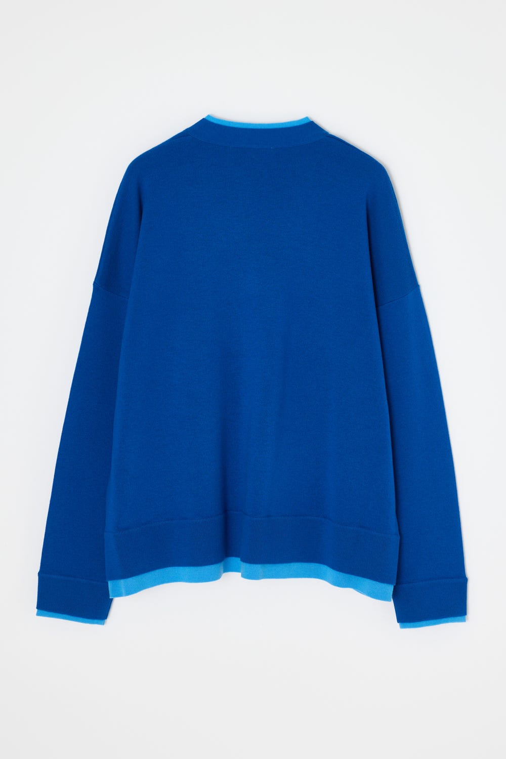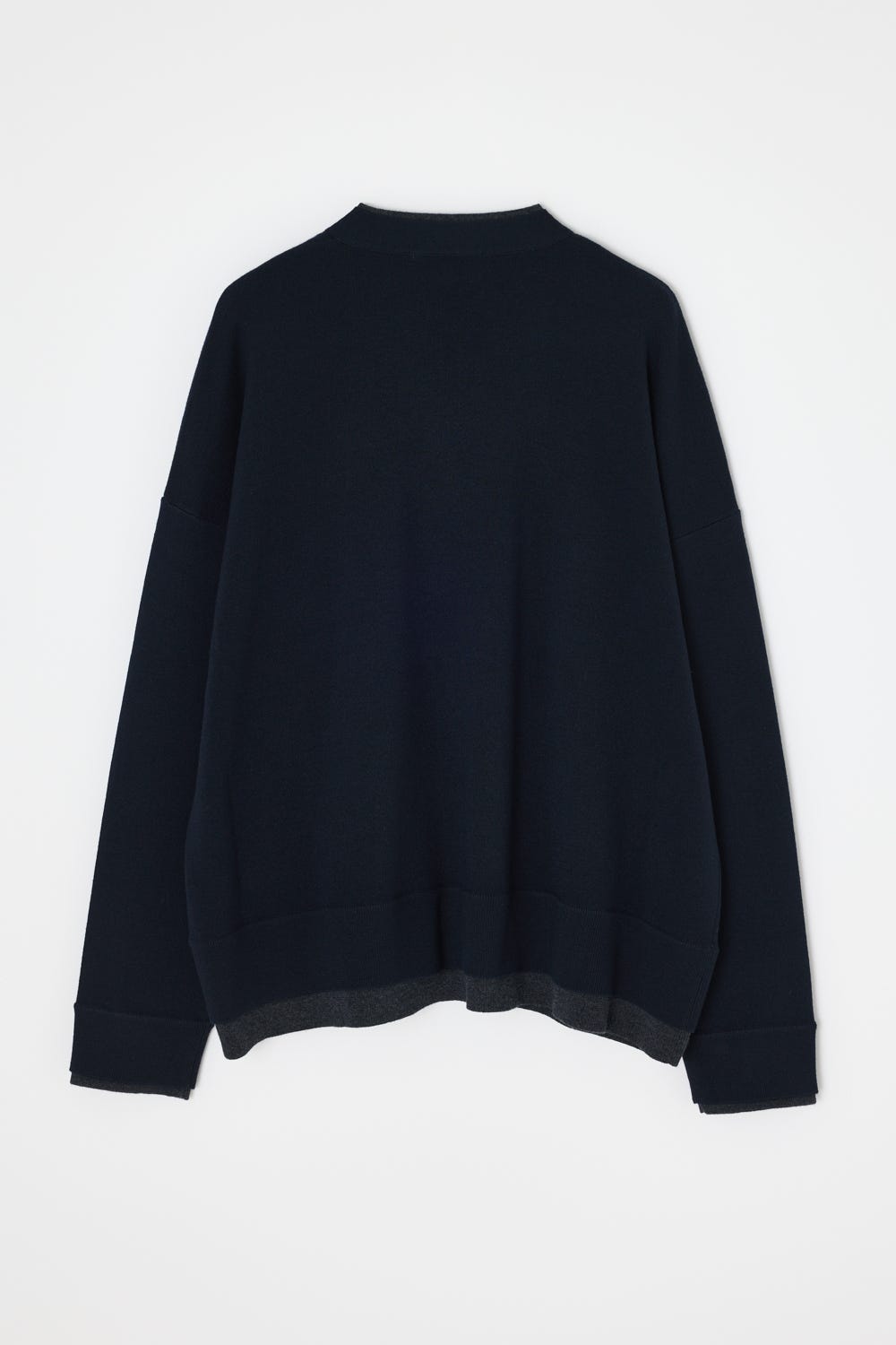 あたかもカーディガンを2枚重ね着しているかのようなありそうでなかった配色ディティールがスタイリングにさりげなく彩りをプラスしてくれます。