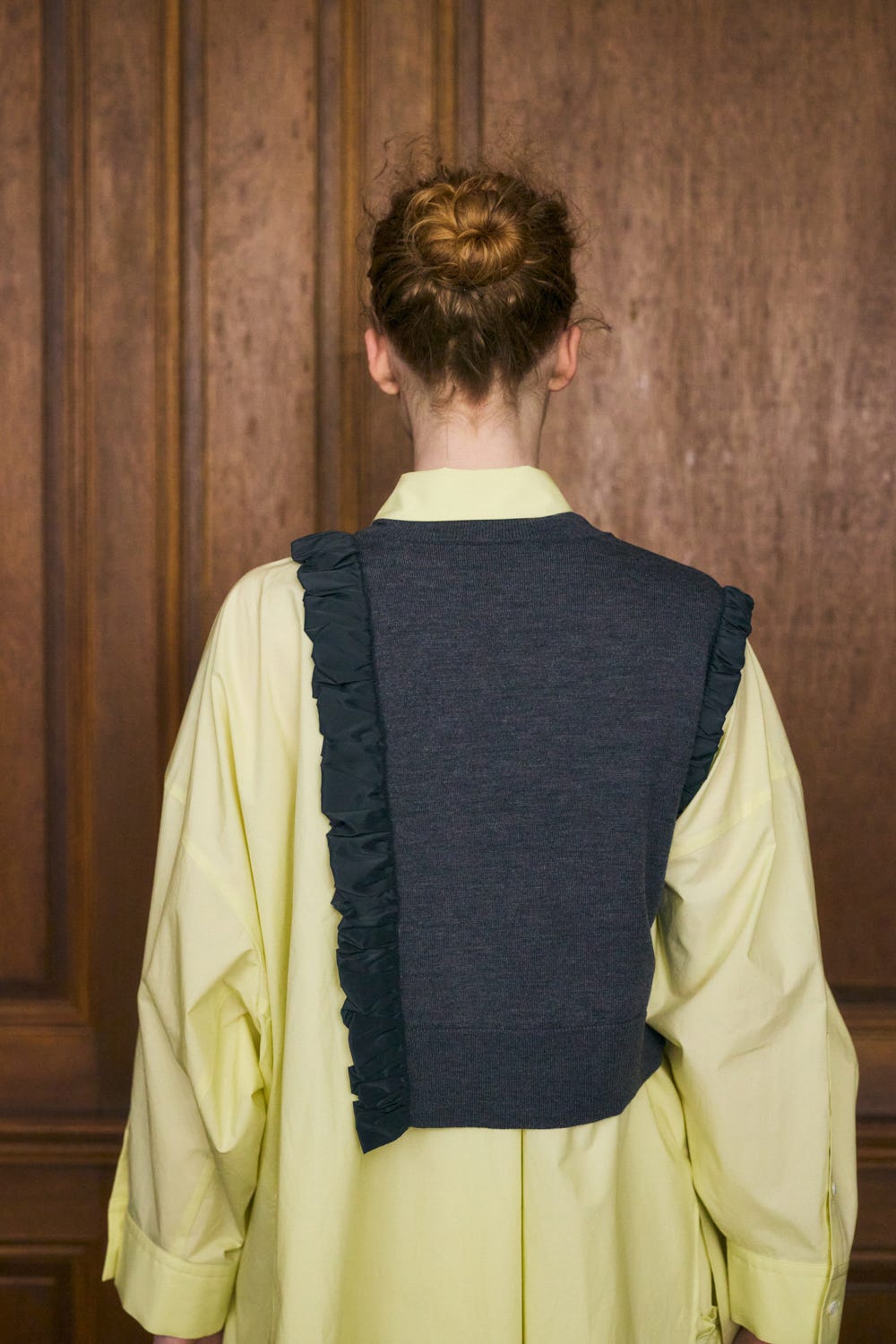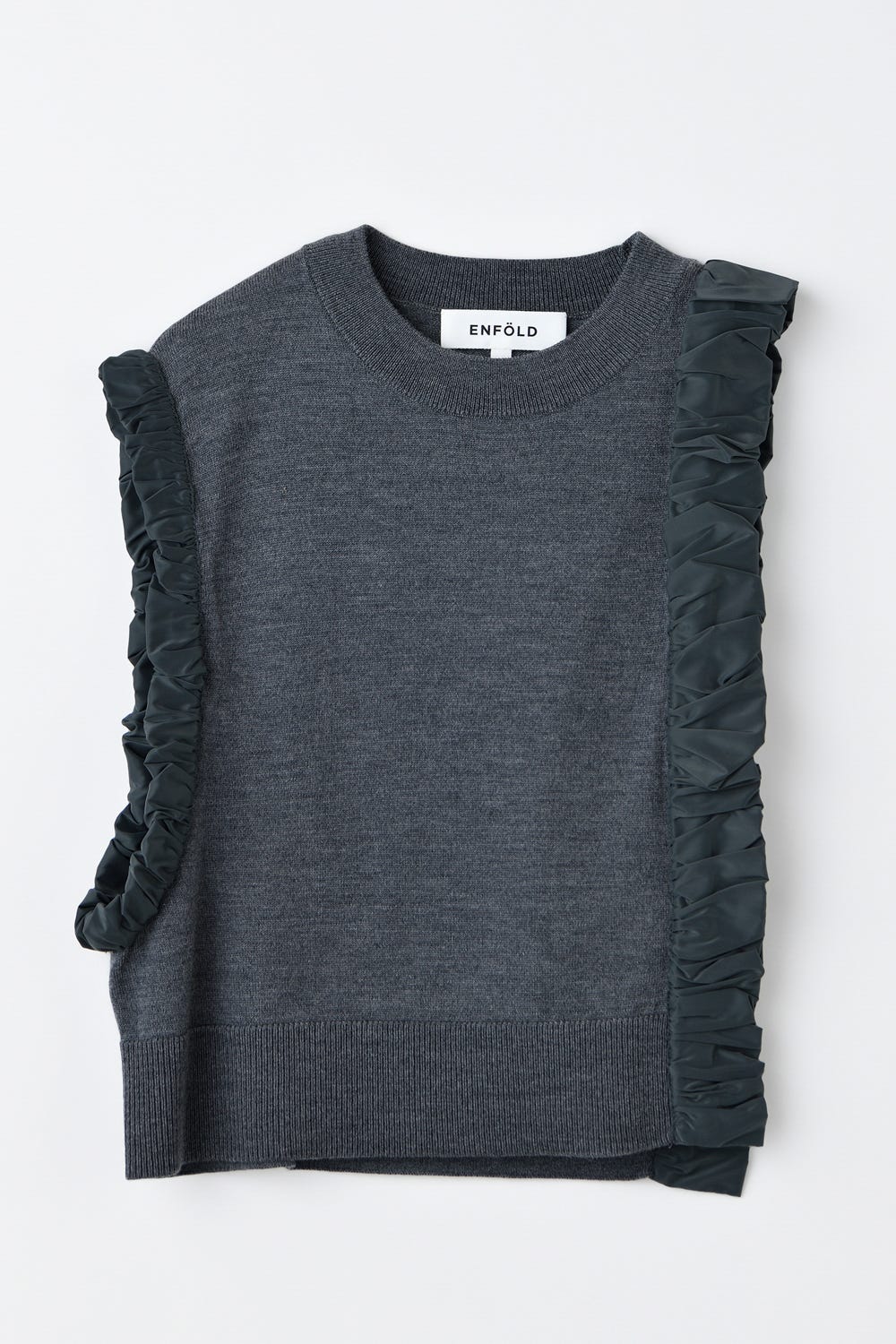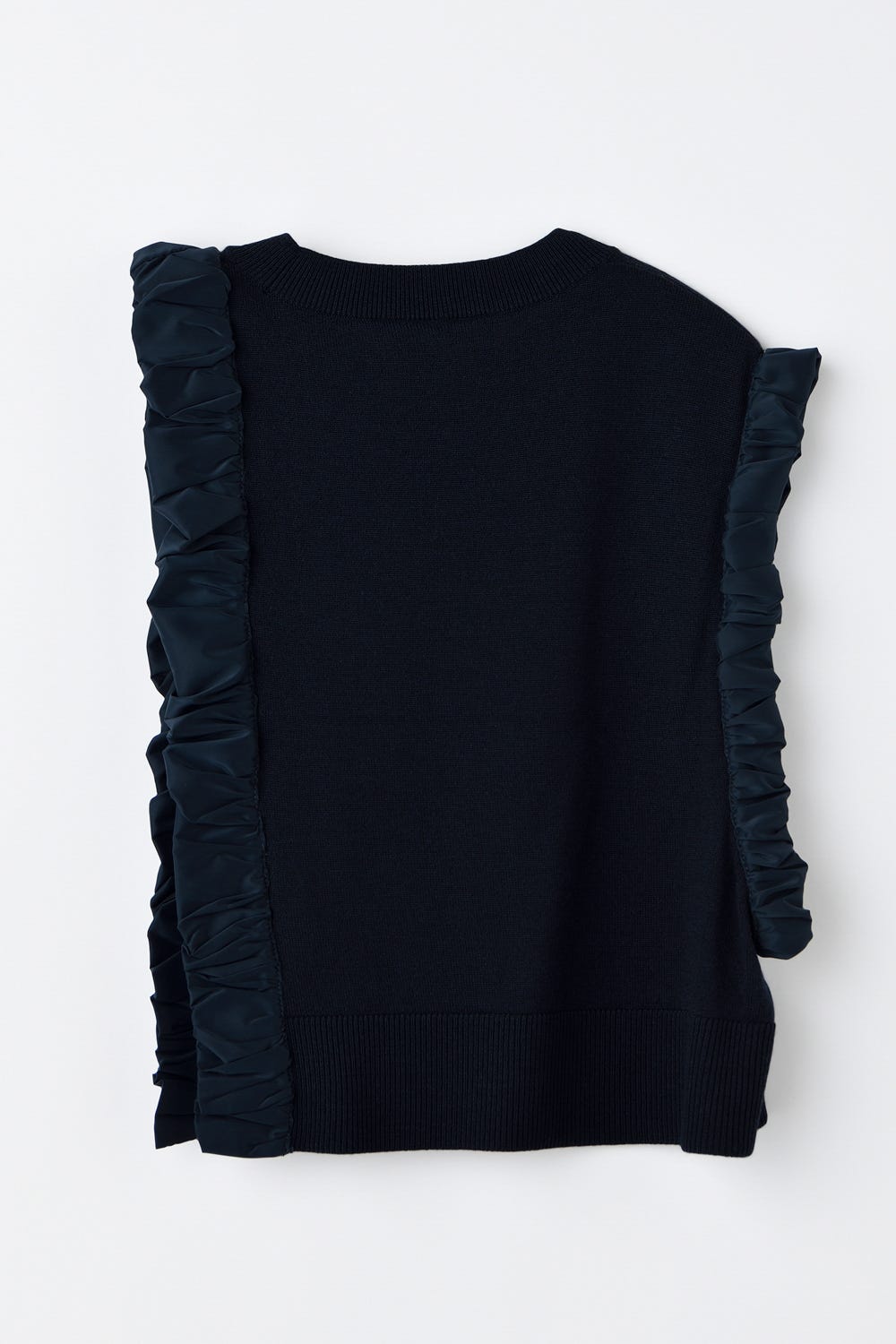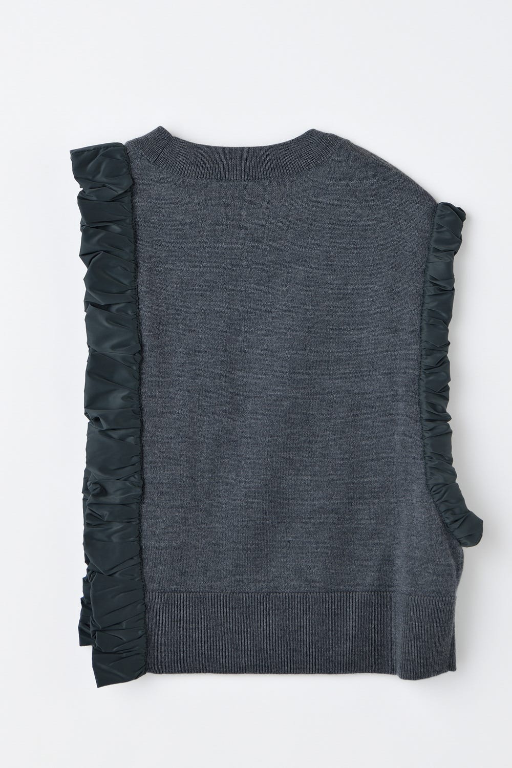 タフタでくしゅくしゅと包まれたアームと脇が特徴的なアシンベスト。