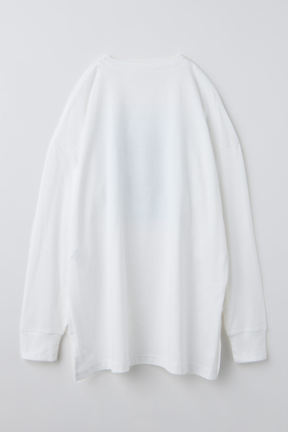 カジュアルな印象になりがちなプリントロンTを大人な雰囲気に変換し、素材をコラージュしたポイントデザインロンT。