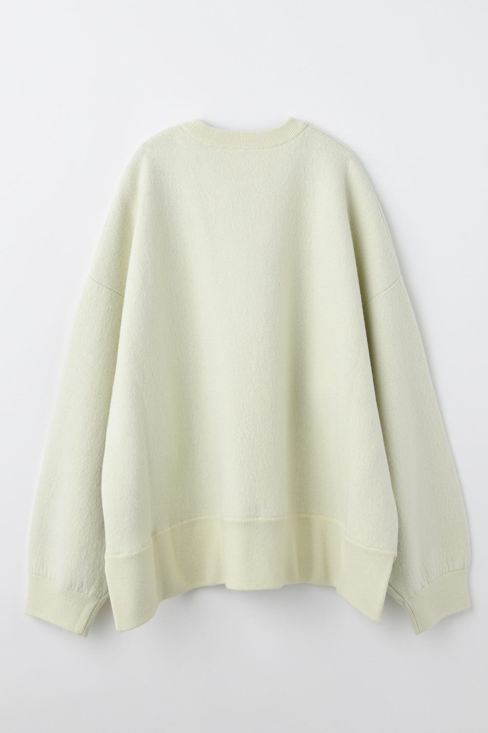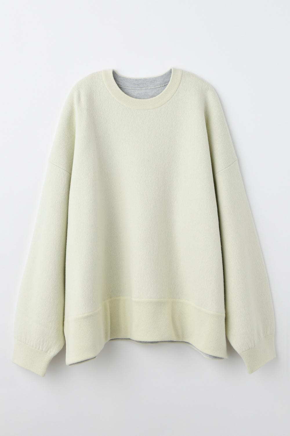 ダブルフェイスの仕立てになっているニットで表はベーシックなニット、裏はポイントカラー入りのニットプルオーバーとして2つの顔を楽しめます。