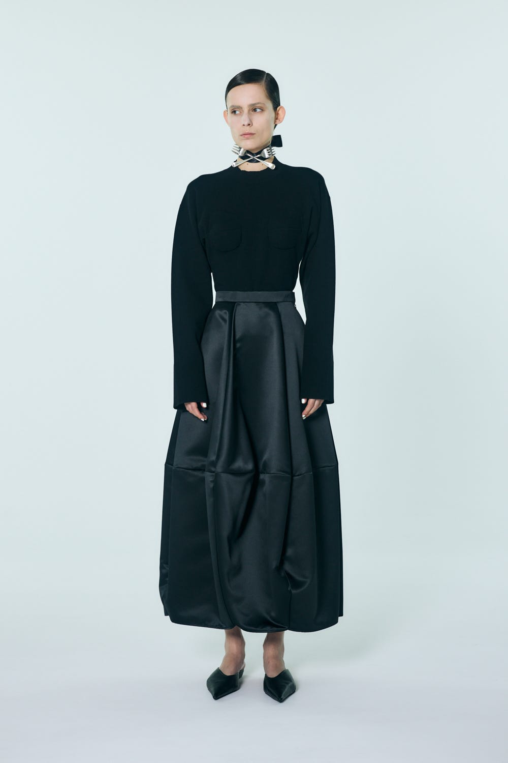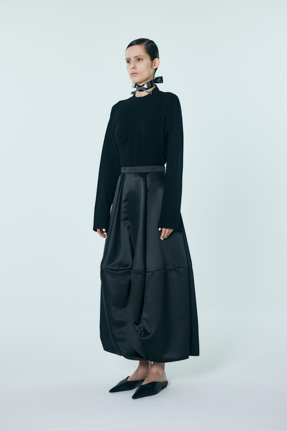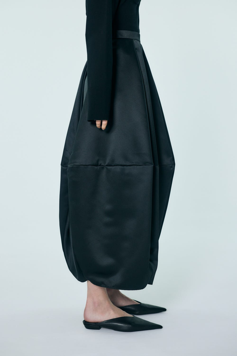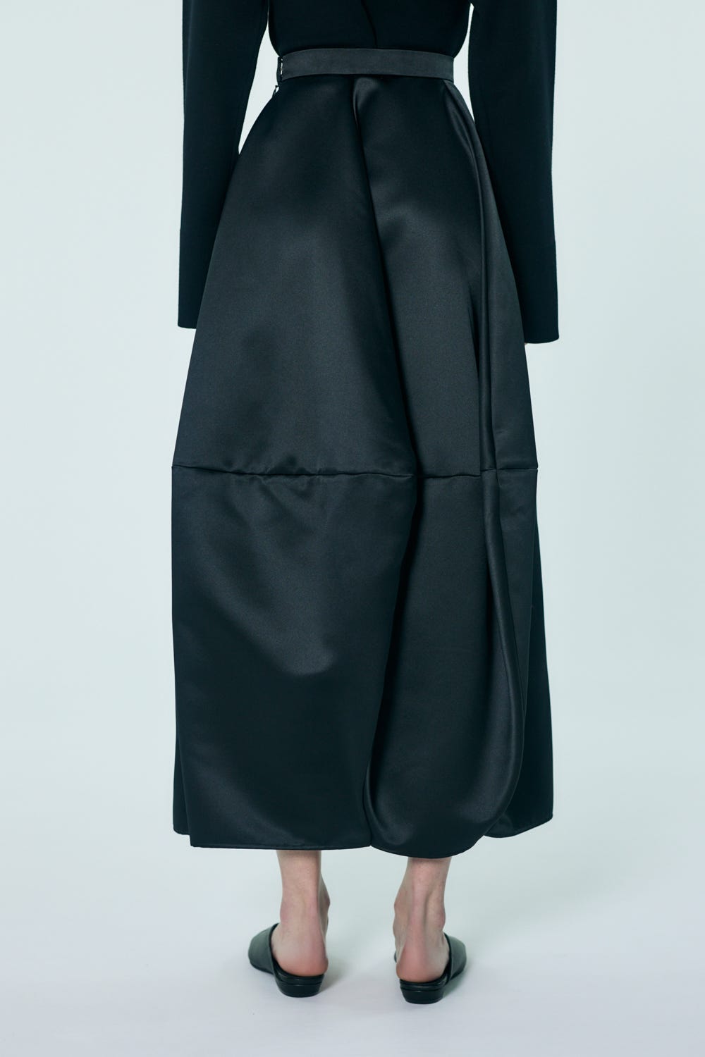 いつものコクーンスカートにモードなディティールをプラスしたNEWアイテム。
