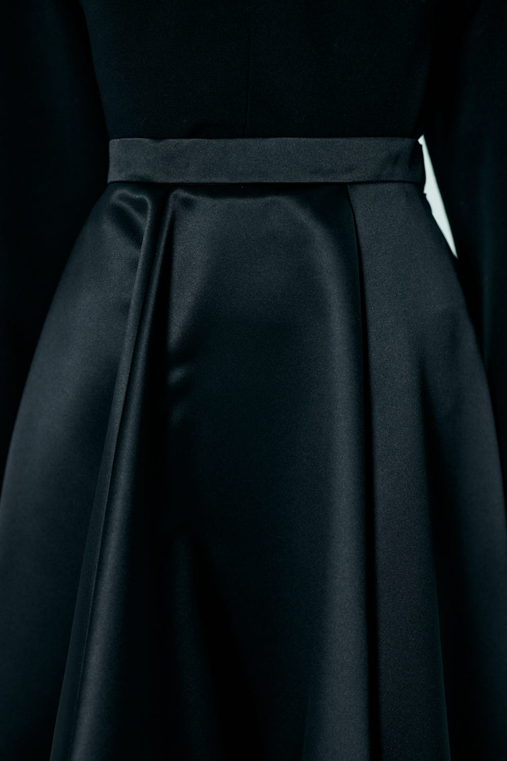 ピラミッドのような美しい三角錐のシルエットをハードサテン素材で上品に仕上げました。