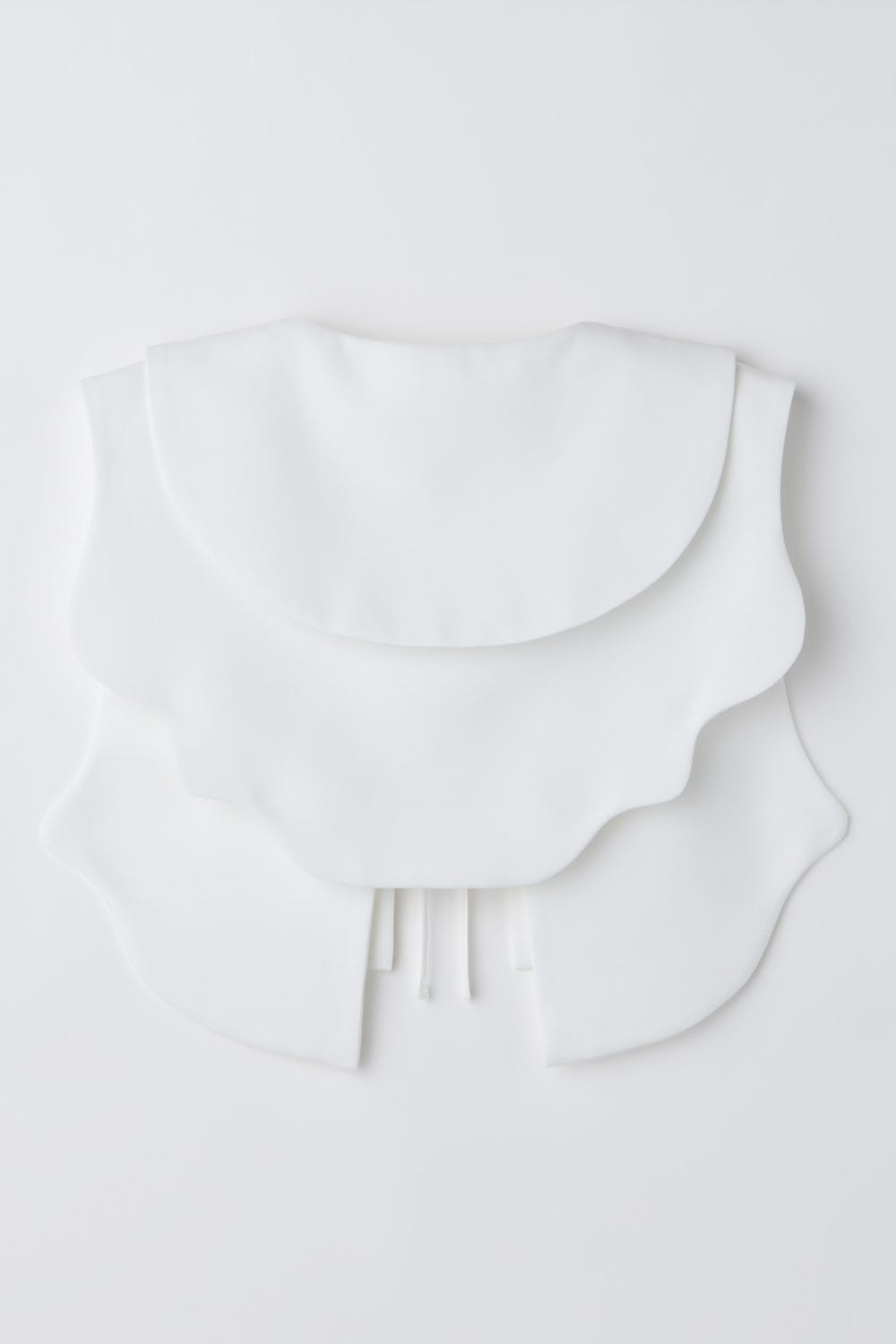 今季テーマの「Dinner」より、食事の際に使用するプレートから着想を得てデザインをした付け衿タイプのパーツ。
