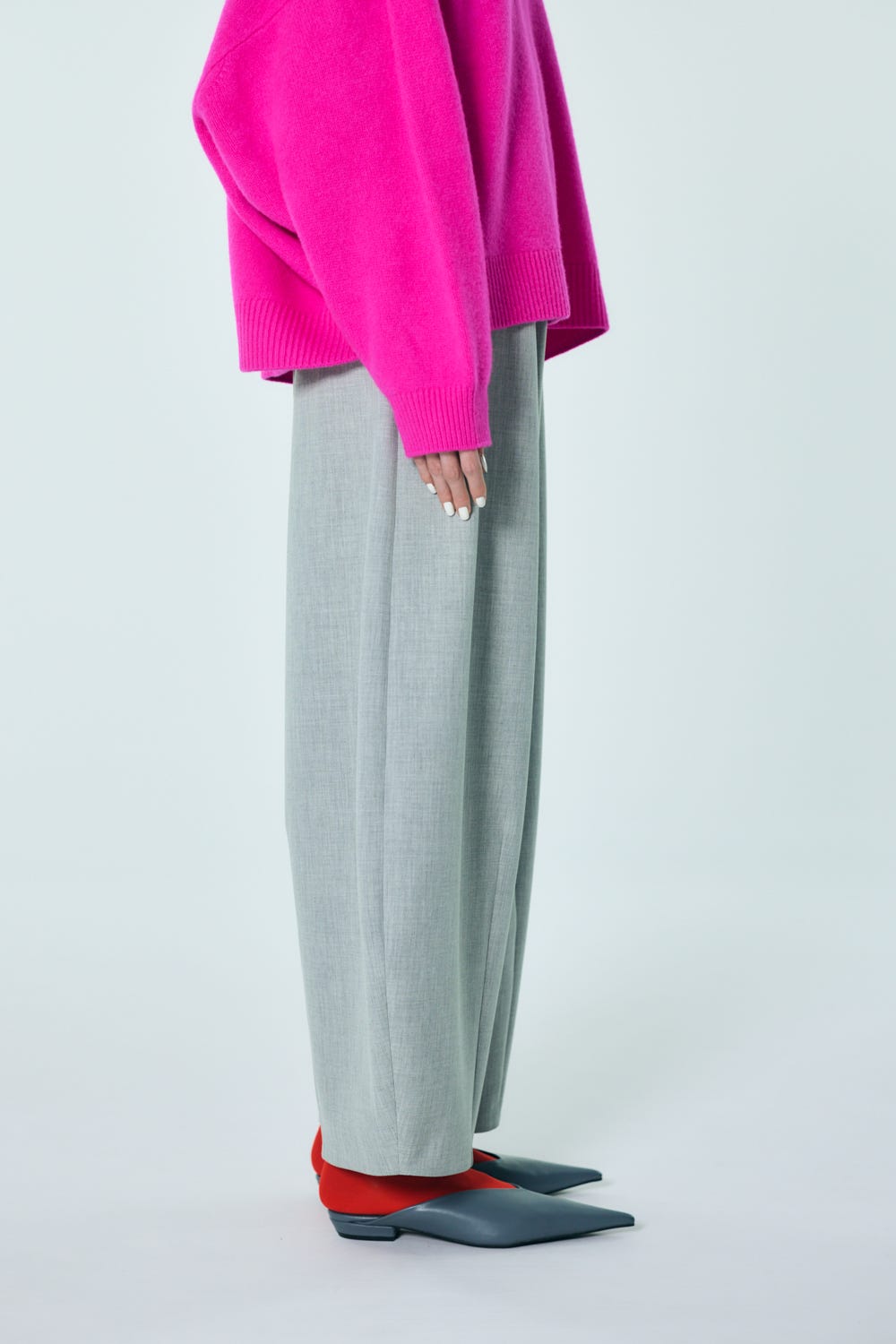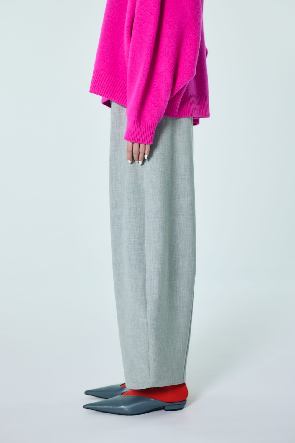 立体的なラウンドシルエットが体型をカバーしつつスタイリングにポイントを持たせてくれるパンツ。