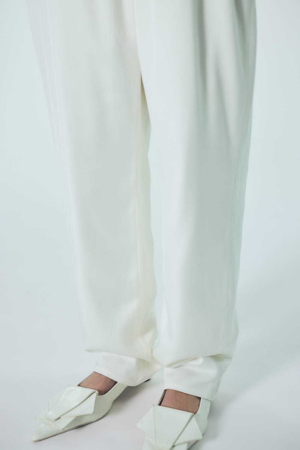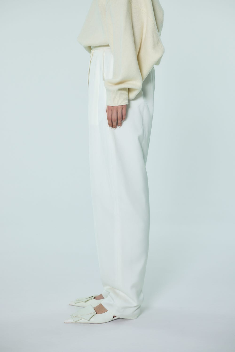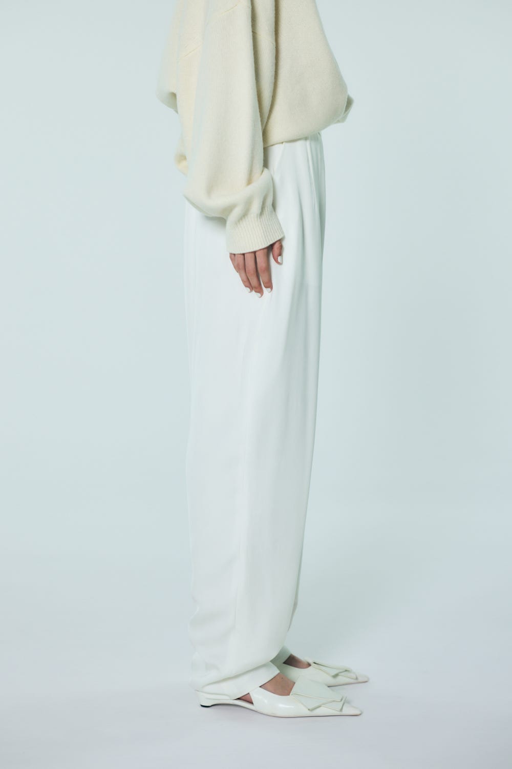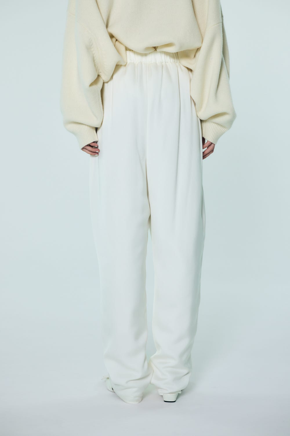 お腹まわりが気になる中ワタパンツでもフロントにタックをあしらうことでカバーし、後ゴムでリラックス感をプラスしたアイテム。