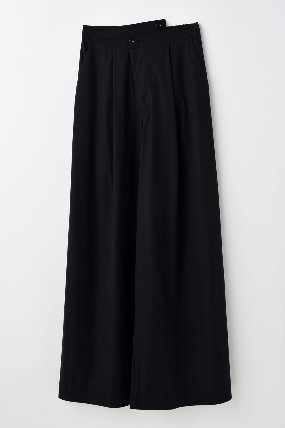 ウエストがずれているようなディティールを採用しているためトップスをインしてきた際にスタイリングのポイントになってくれます。