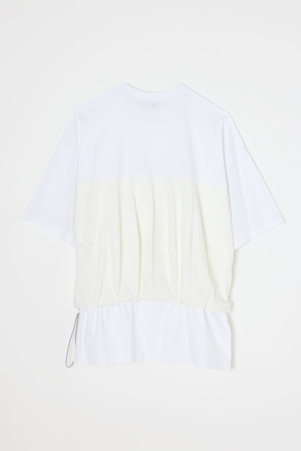 身頃にあしらわれているバルーンシルエットが程よくフェミニンさをプラスしてくれるデザインTシャツ。