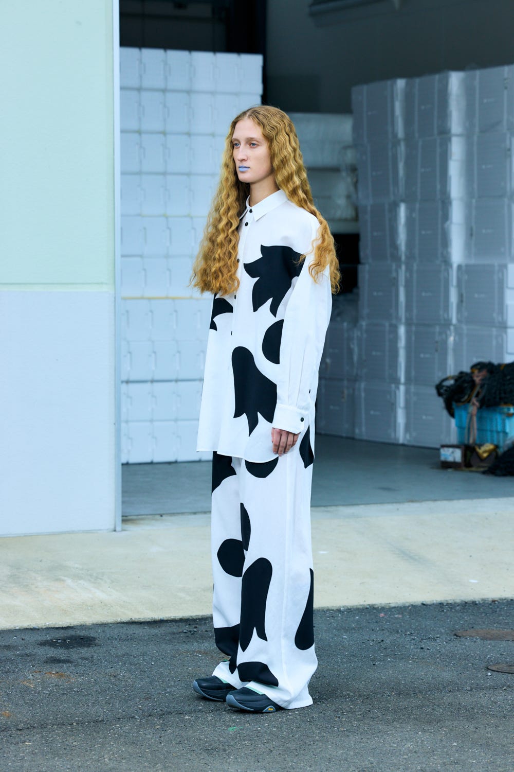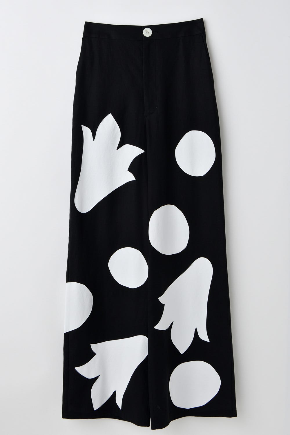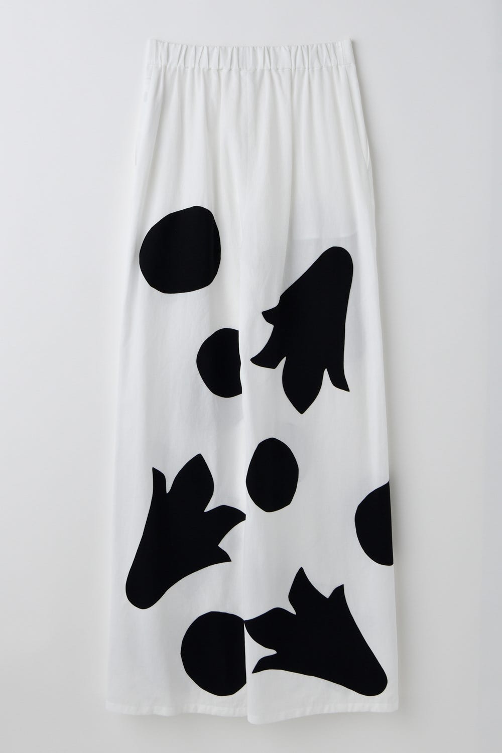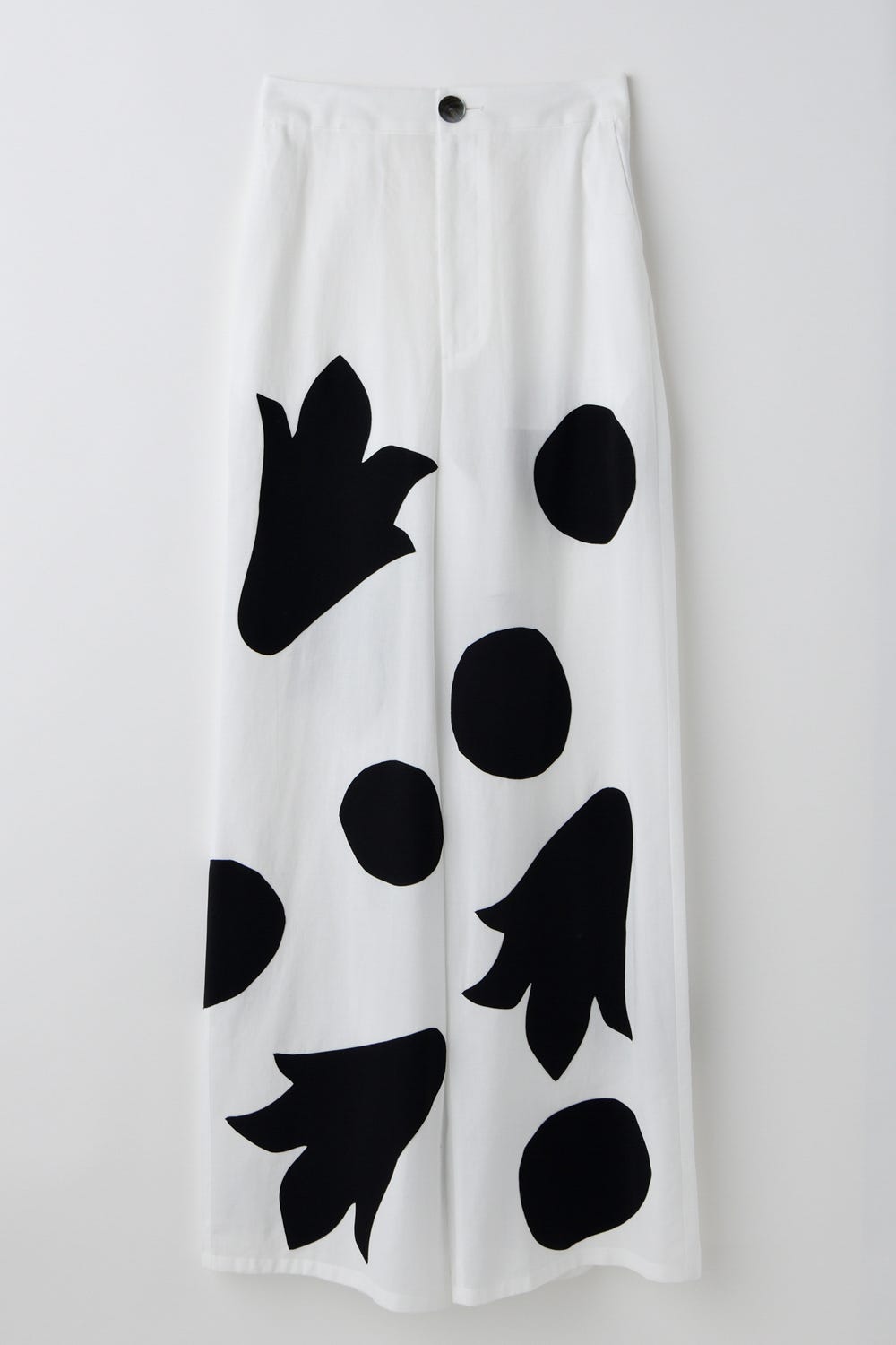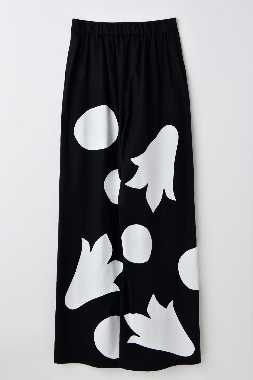 ベーシックなパンツシルエットに植物モチーフがあしらわれており、着用するだけで華やかなスタイリングにしてくれるアイテムとなっております。