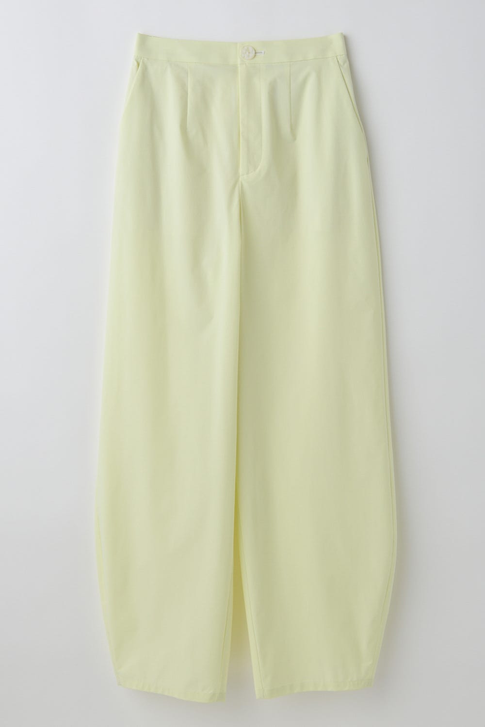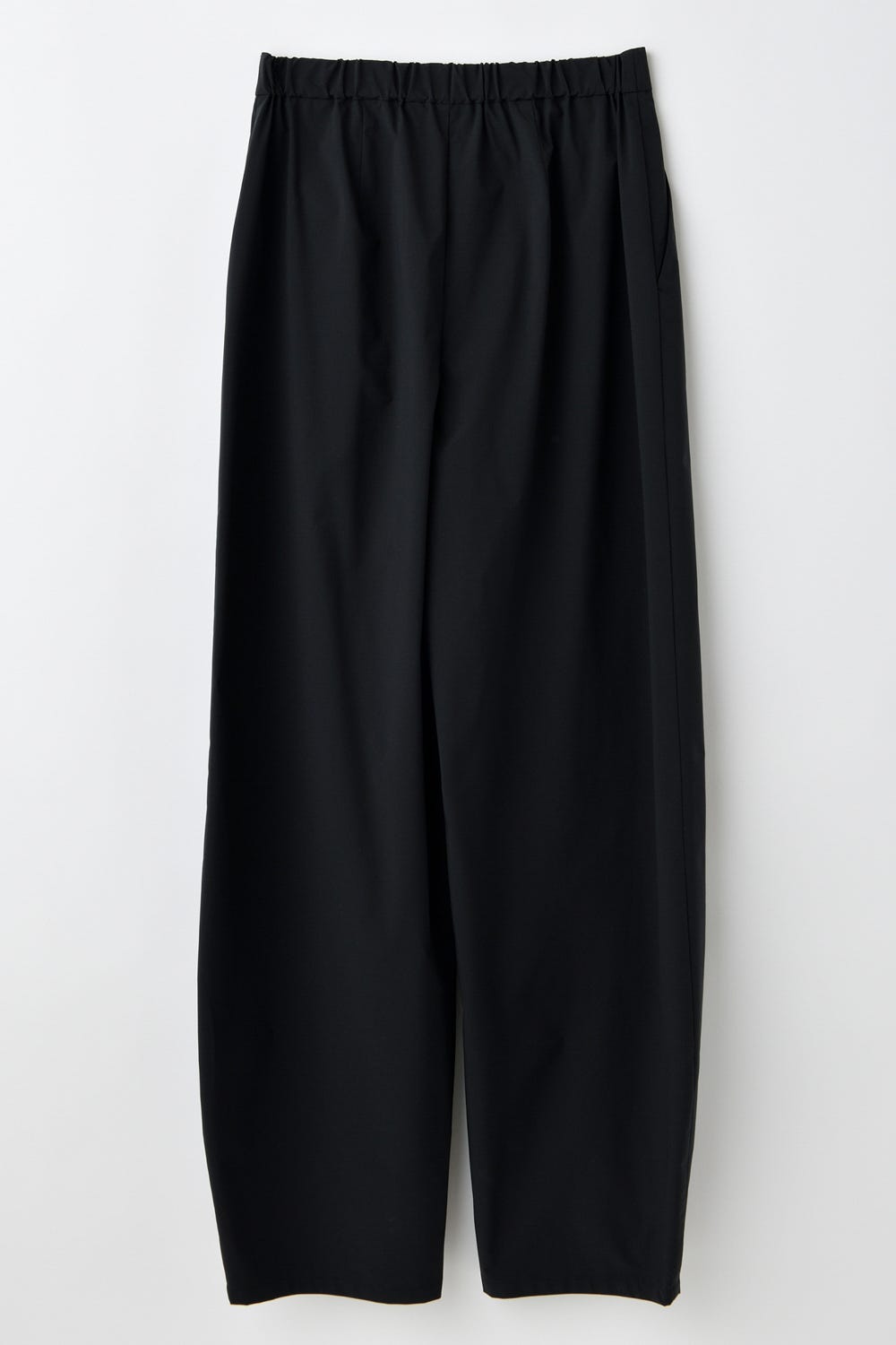 スタイリングする際に取り込みやすいコクーンパンツ。撥水機能付きの薄手素材で作られているため様々なシーンで涼しく着用できるアイテムとなっております。後ろウエストがゴムになっているため体型を気にせず着用していただけます。ベージックなブラック、ダークグレーに加えて、涼し気なライトイエローのカラーがシーズンカラーもポイントです。※サンプルを使用して撮影しております。実際の商品と仕様が異なる場合がございます。予めご了承ください。