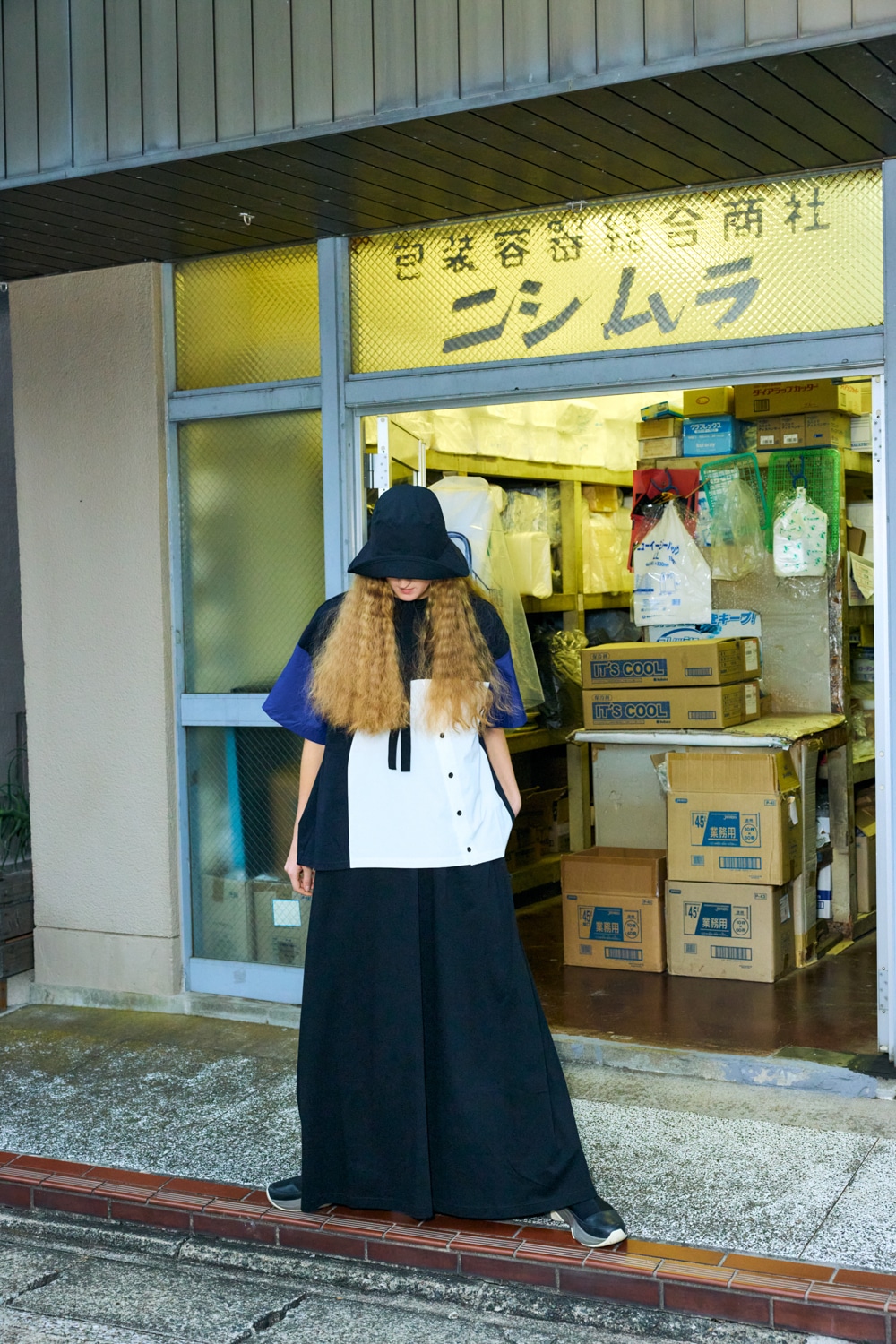 ルーズなサイズ感で着る人を選ばず、ドッキングの配置が今までにはない新鮮なものになっております。