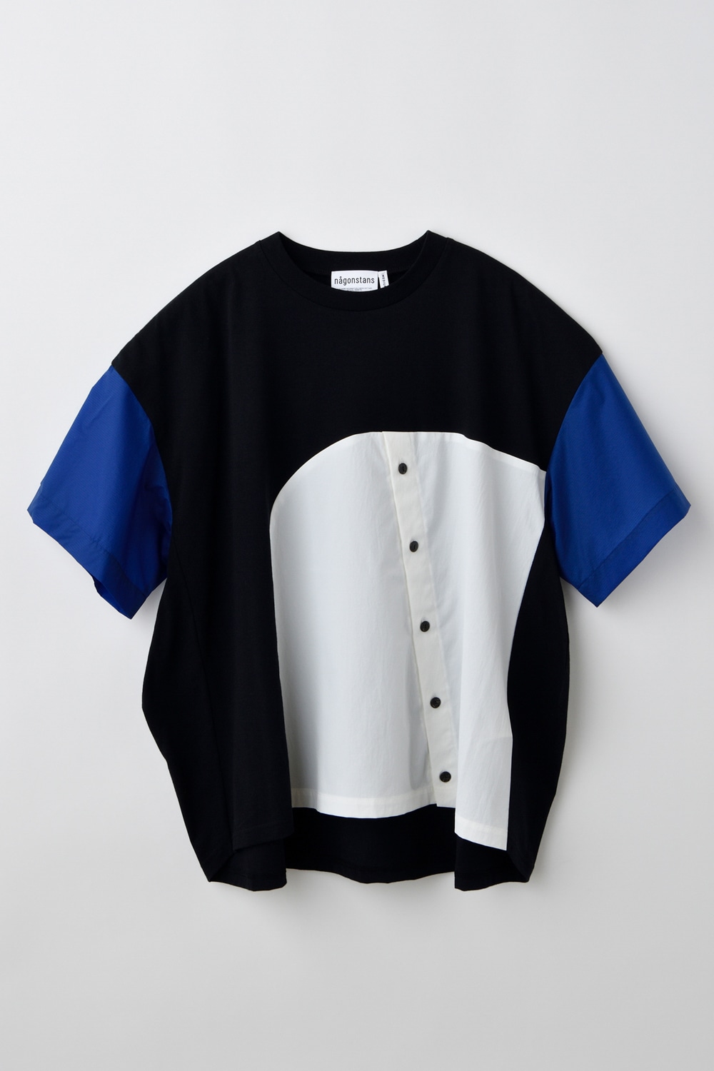 素材をミックスさせたヘキサゴンチックなシルエットTシャツ。