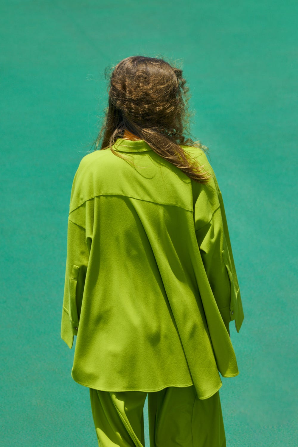 後身頃の斜めヨーク切り替えが印象的なシャツ。