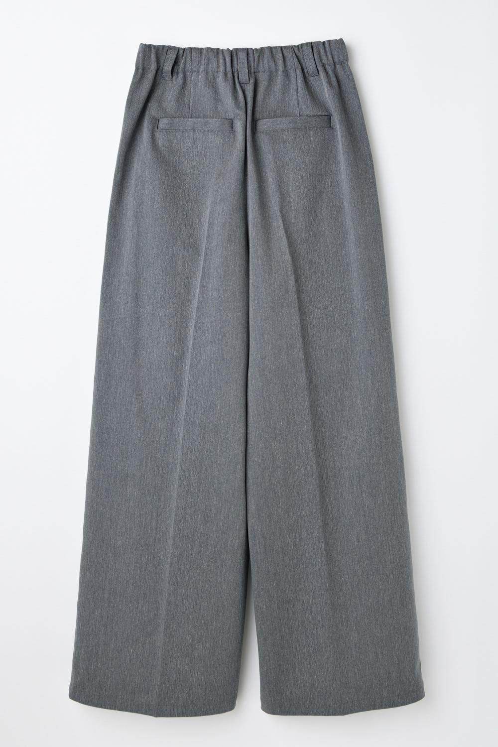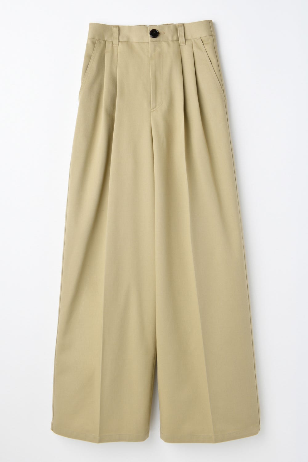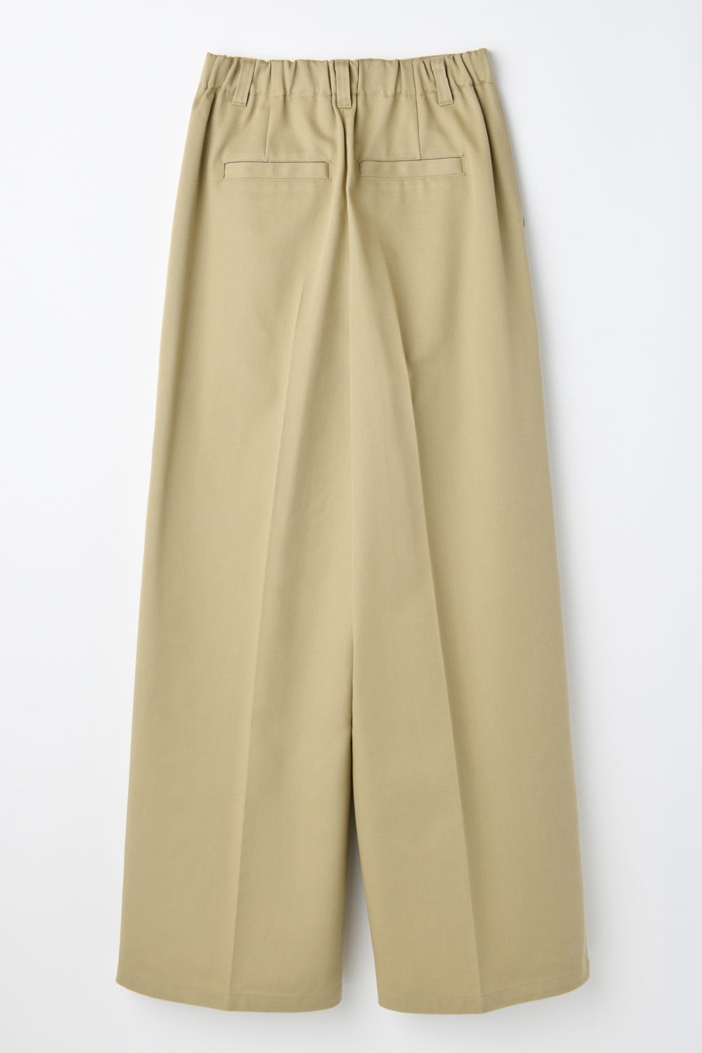 前後にセンタープレスを入れることで太めのストレートシルエットでもすっきりとした印象のパンツアイテム。