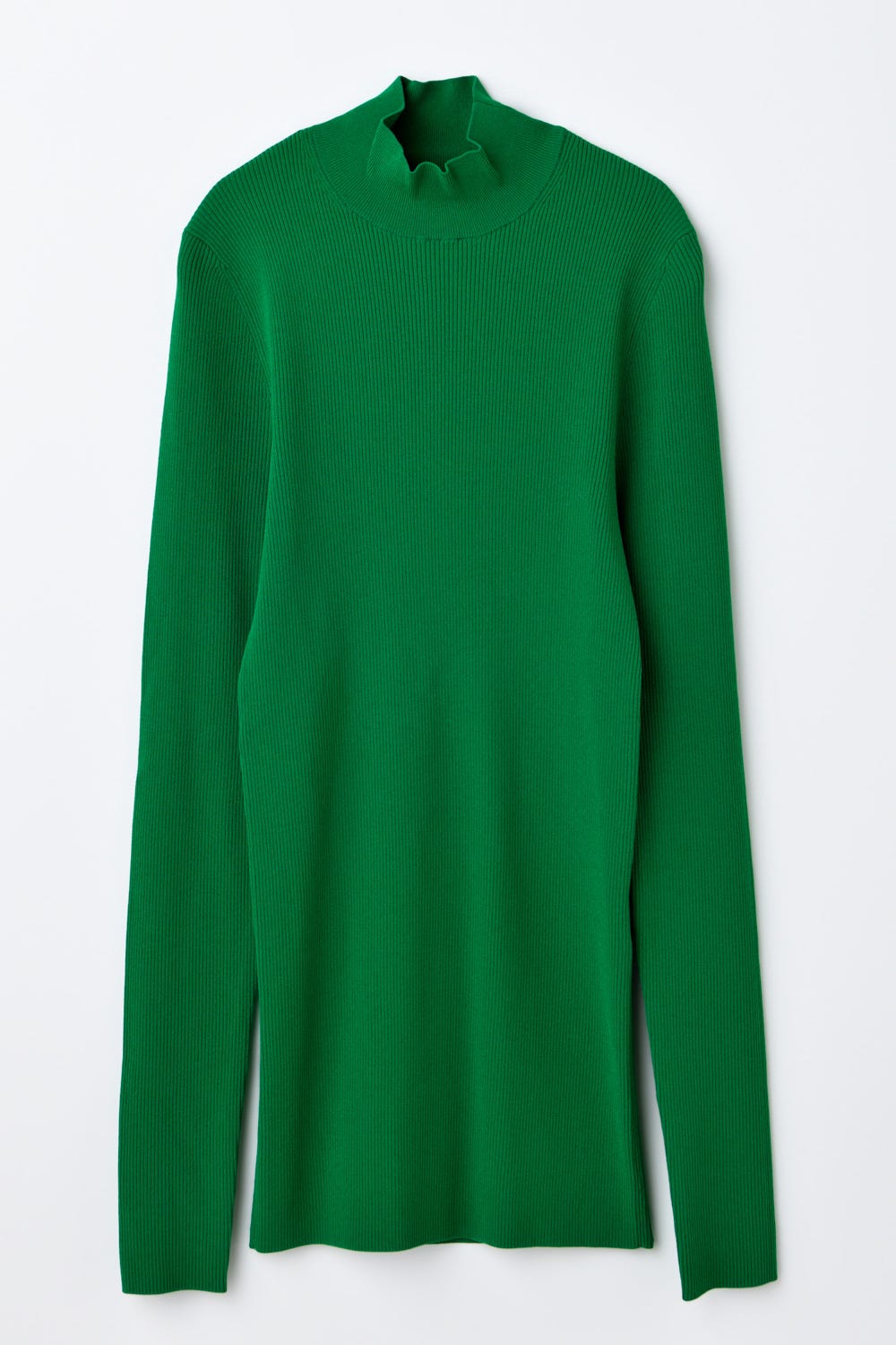 高すぎないハイネックが首元に美しくフィットするリププルオーバー。