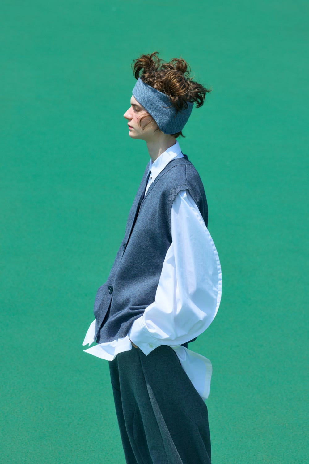 同月で展開しているシャツやロンTとのレイヤードスタイルがおすすめで、前の釦を少し開けて抜け感を出すスタイリングもおすすめです。