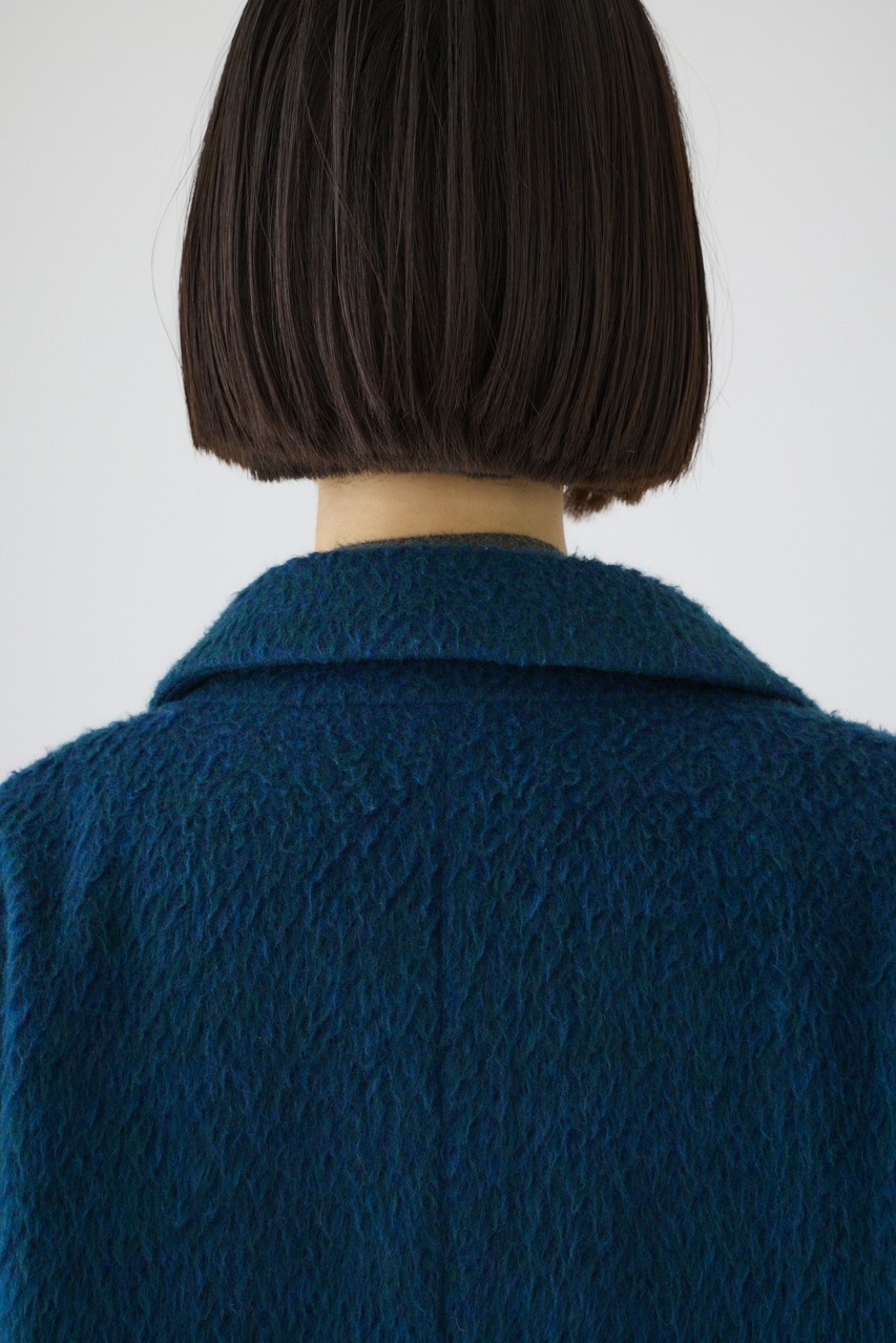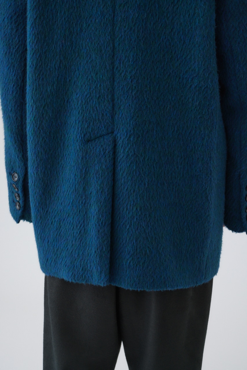 タテとヨコ異なる色の糸で織り上げたことで表現された奥深いカラーと、軽さと温かさを兼ね備えた中肉厚のウールシャギーを使用。オーバーサイズにすることでメンズライクなかっこいいジャケットに仕上げました。ミックス調の色味はスタイリングにこなれ感をプラスし、地味になりがちな冬のコーディネートにアクセントを加えてくれます。コート代わりとしても使えるしっかりとした仕上がりになっており、とことんマニッシュな着こなしを楽しんで頂きたいアイテム。
