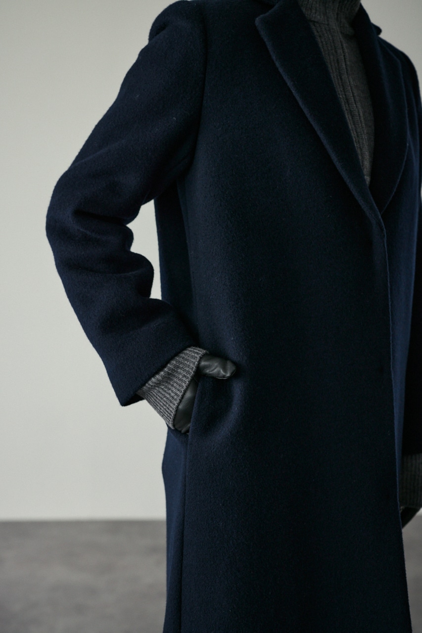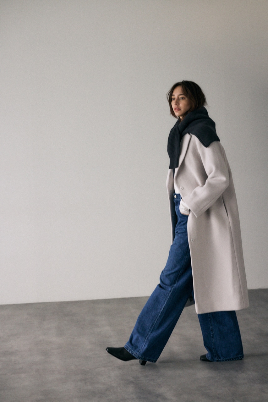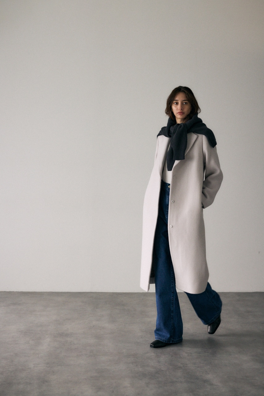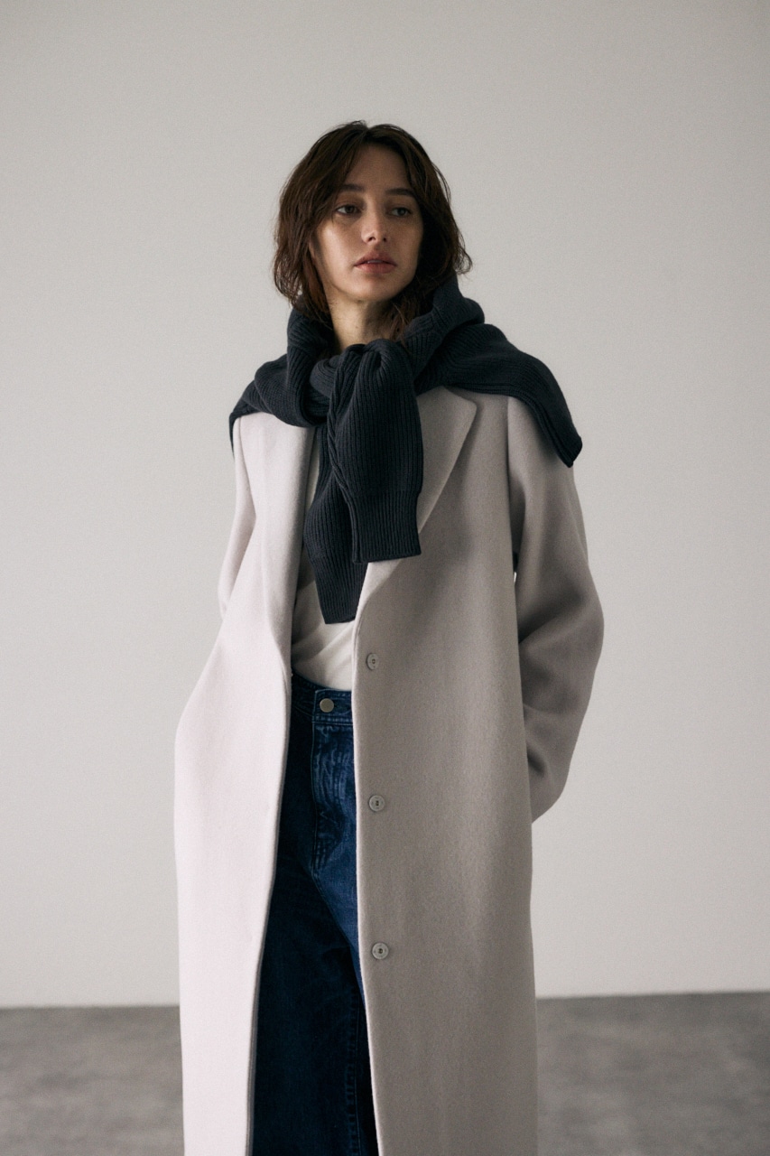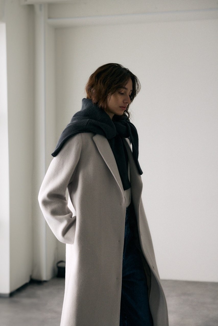 王道のベーシックのようなシンプルなチェスターコートは、重厚感と肌触りの良さに加え、今までになかった驚く程の軽さに拘った一枚。ロングコートとは思えない軽さが魅力のシンプルコートに、着たり巻いたりとコーディネートをクラスアップさせてくれるショートニットをセットした贅沢な一枚に仕上げました。アレンジ次第で他と差のつく上級オシャレが完成するので、毎日のコーディネートが楽しくなる一枚です。