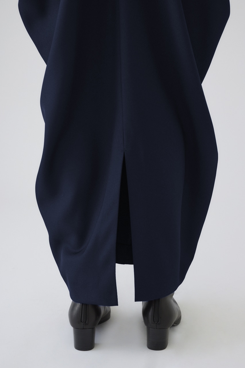 遠くからでも目を引く構築的なドレープのシルエットがラグジュアリーな印象のスカートは、中空糸を使用した生地で製作している為、見た目からは想像もつかない軽さが魅力の一枚。軽量かつ吸水速乾の機能もついて、デザインだけじゃなく、着心地も叶えた実力派な商品です。