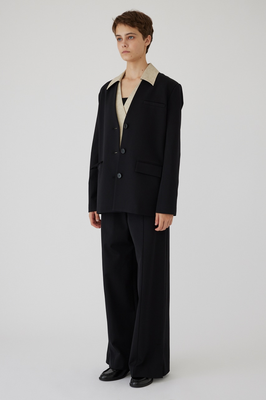 ■DETAIL:綾目の美しいハイゲージツイルジャージで仕立てた肩パッド入りのジャケット。