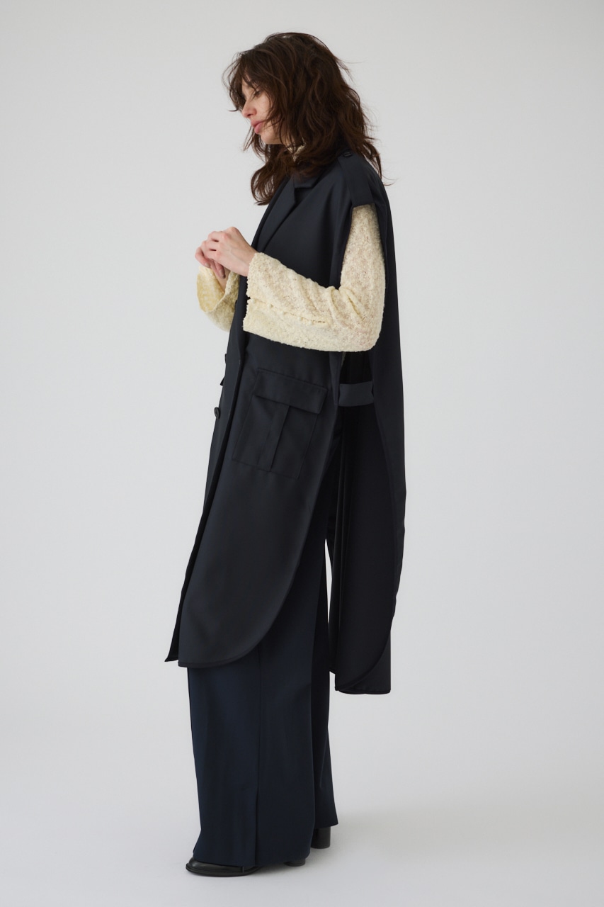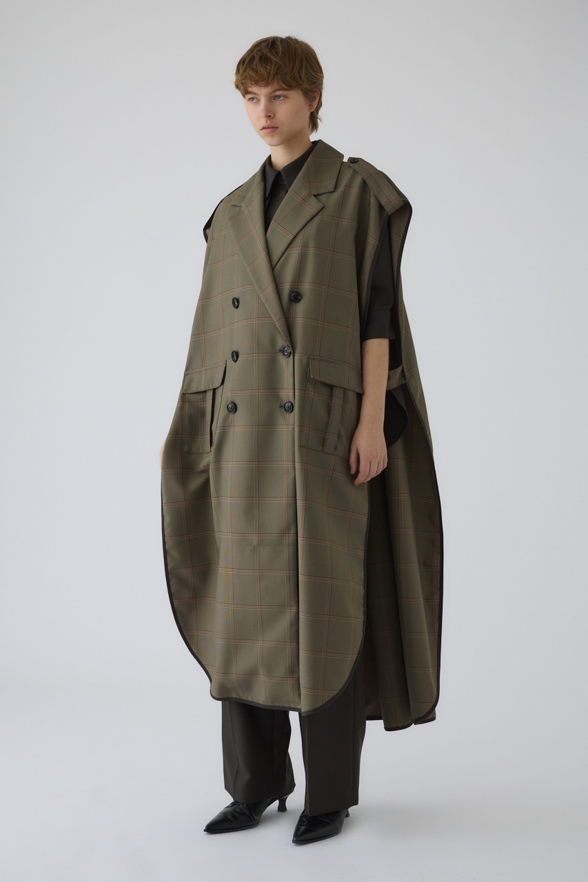 ■STYLING:着るだけでスタイルの完成するケープはサイドを大きく開けたデザインで軽いアウター代わりとして着回し力が高いだけでなく、ベーシックなシンプルコーデに合わせるだけで上品で知的な印象を与えてくれます。