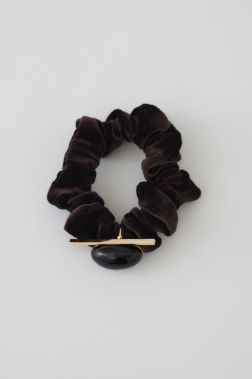 ■POINT:天然石をオーバル型に施し、ベロア生地のシュシュにセッティングしたホリデーシーズンにぴったりのヘアアクセサリーです。