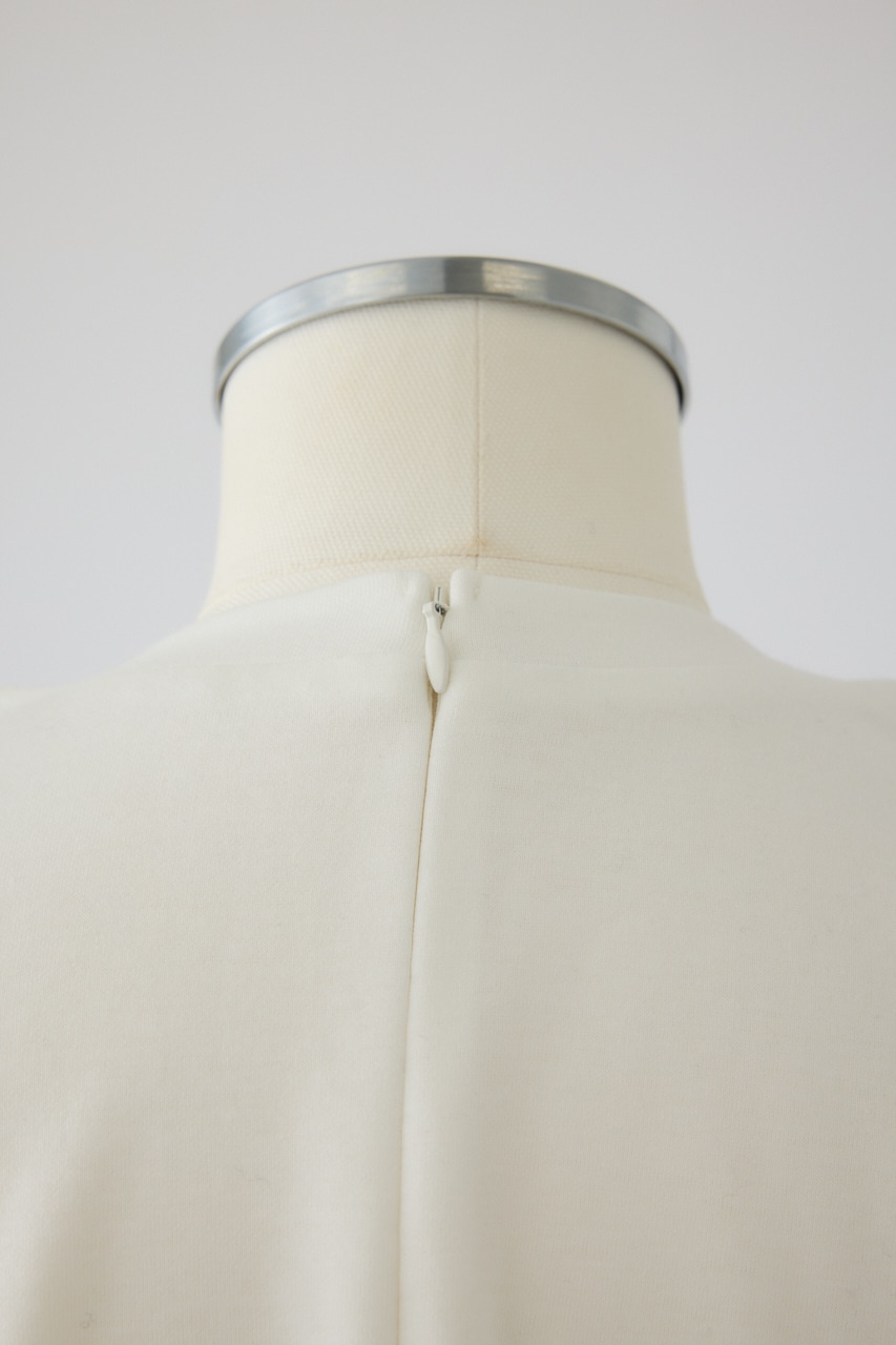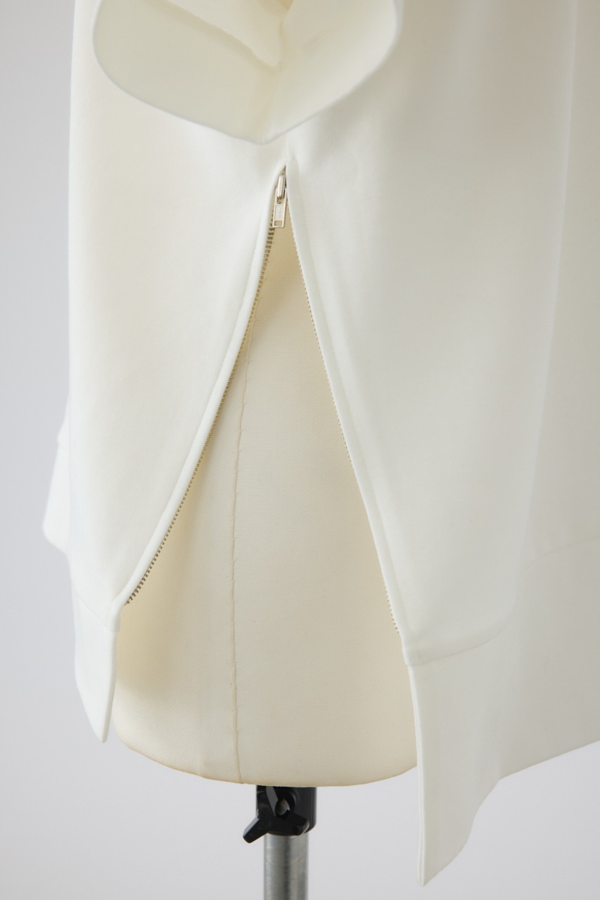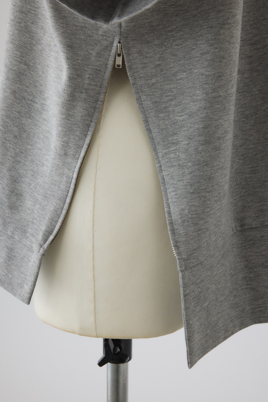 ファスナーを開けばさりげない肌見せとAラインシルエットで意外性のある1着。