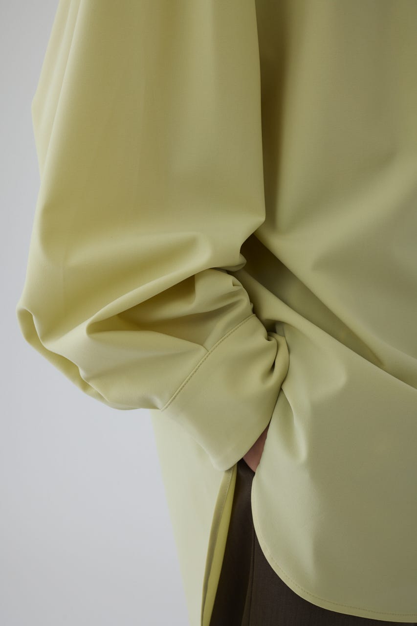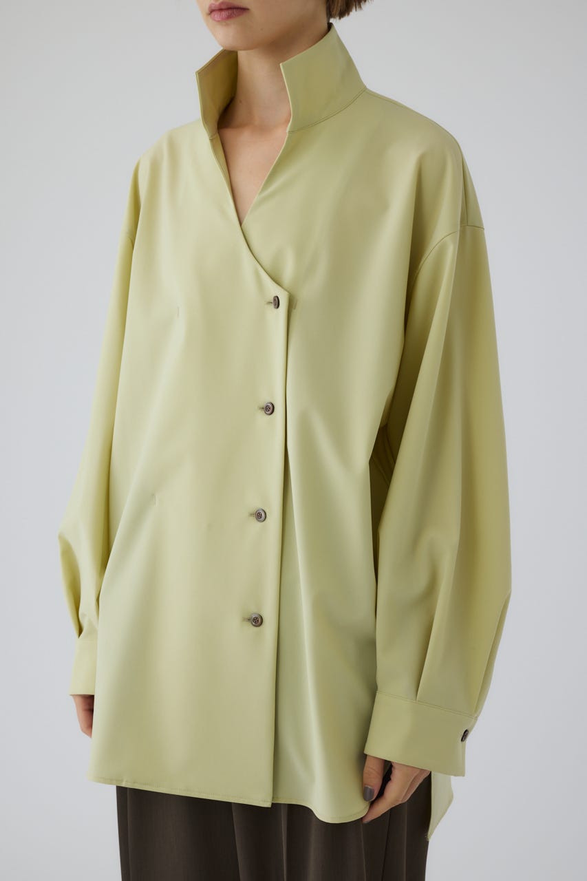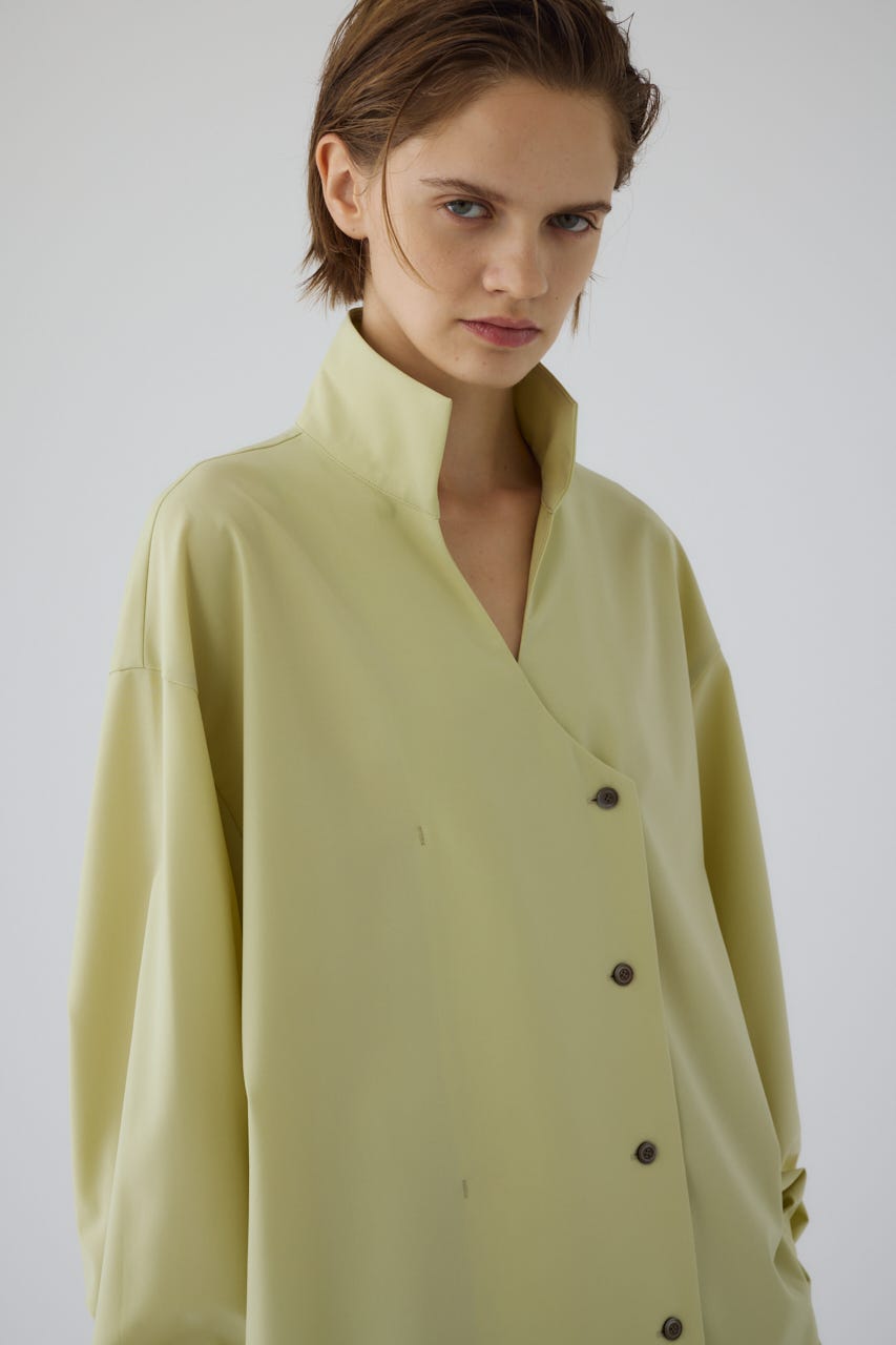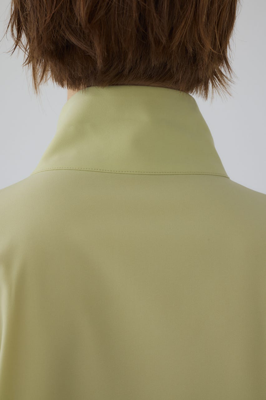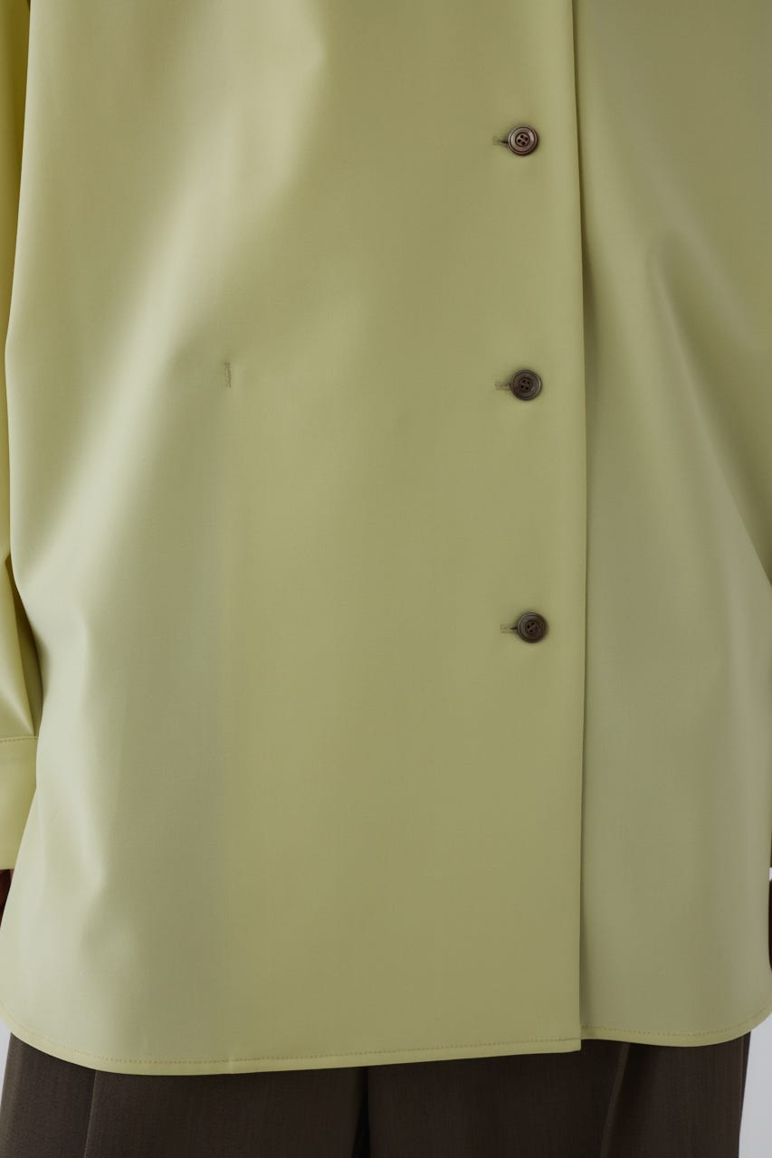■POINT:接触冷感・UVカット機能付きでシワになりにくい中肉合繊生地を使用した、ジャケットのような雰囲気のミドル丈シャツ。